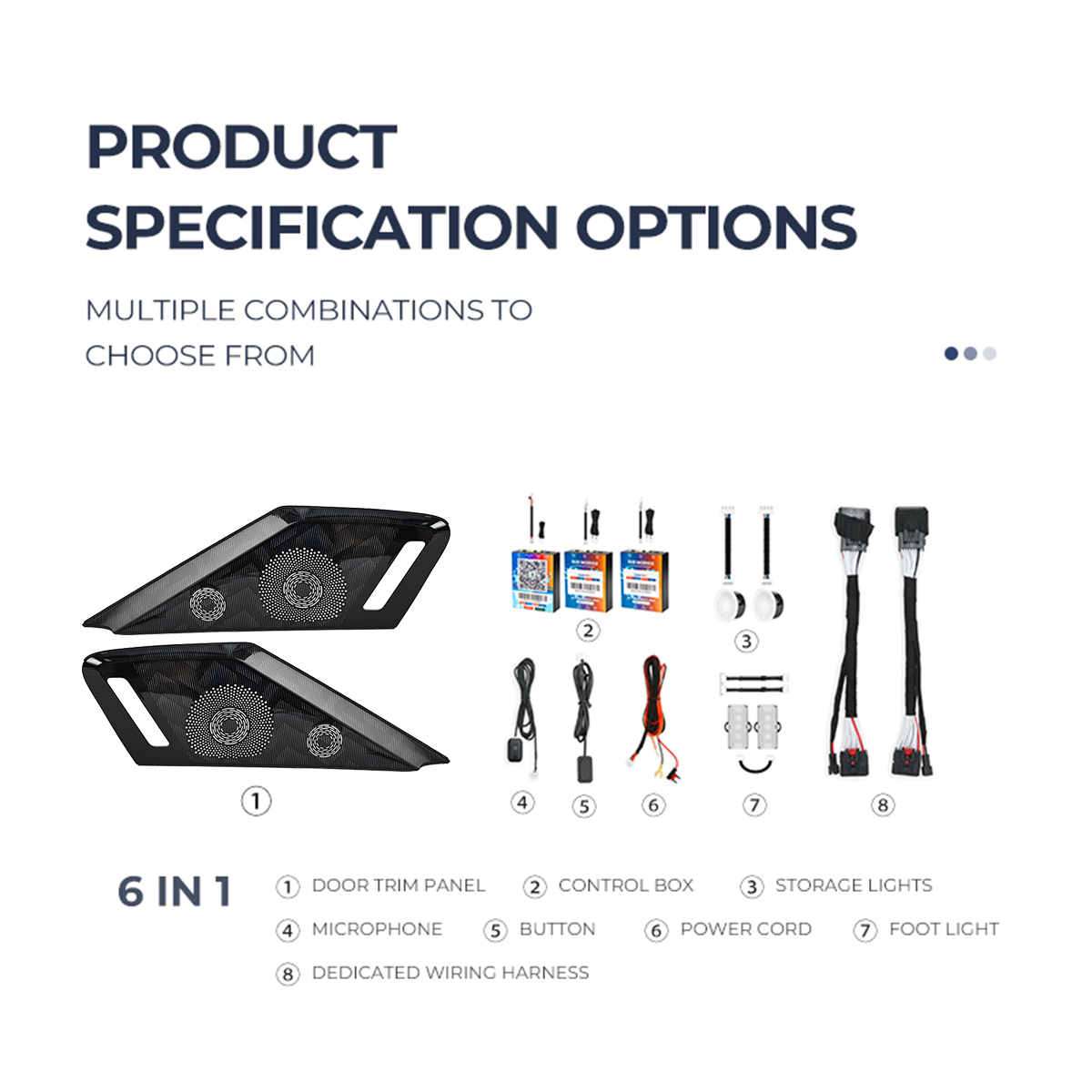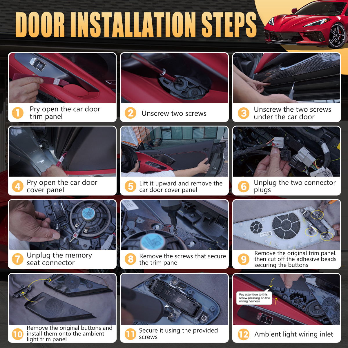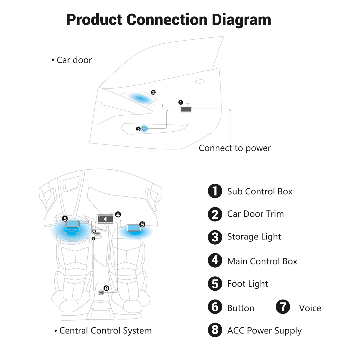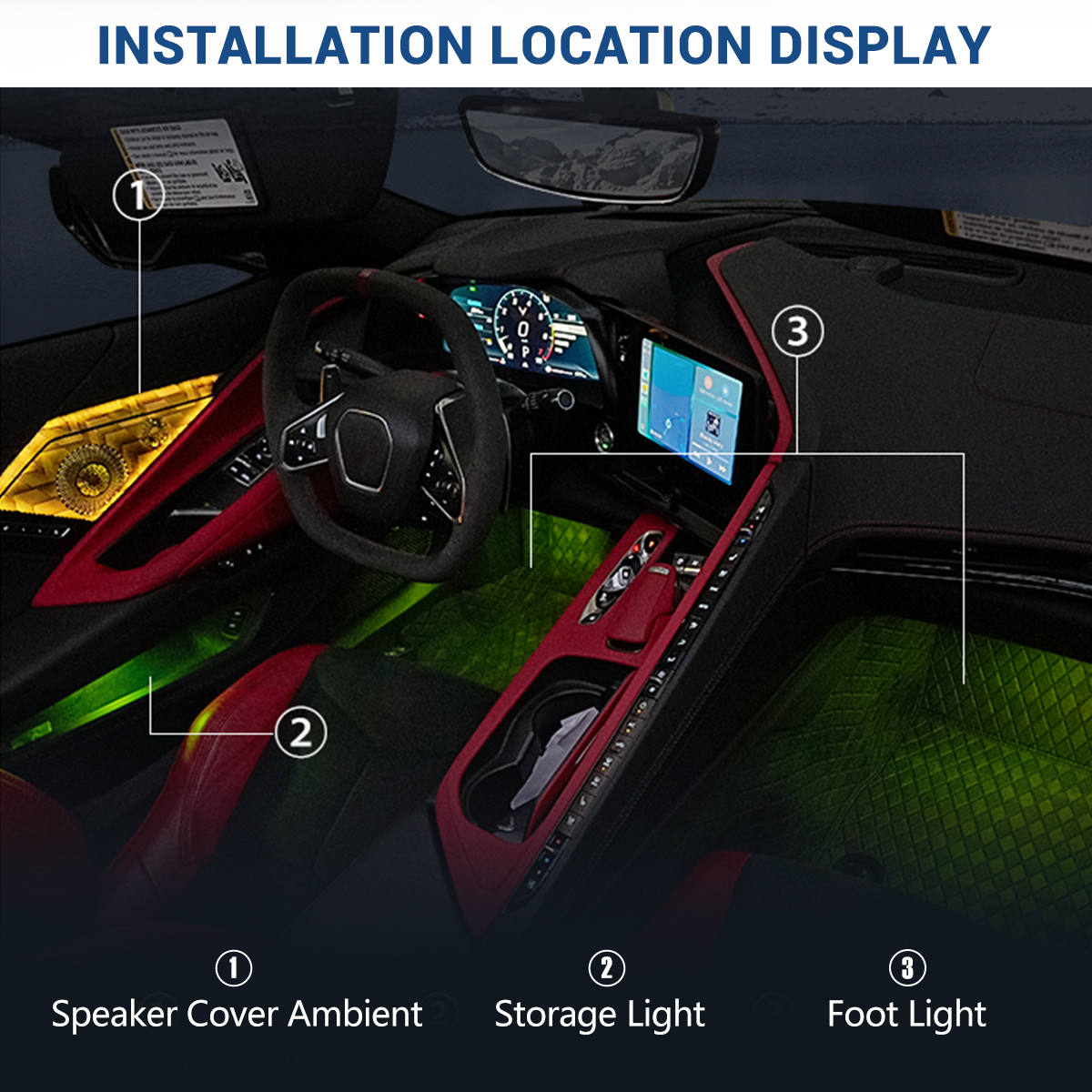 Installation Locations: Interior Outline, Footwell, Storage Compartments, Door Handles, Central Console, etc.