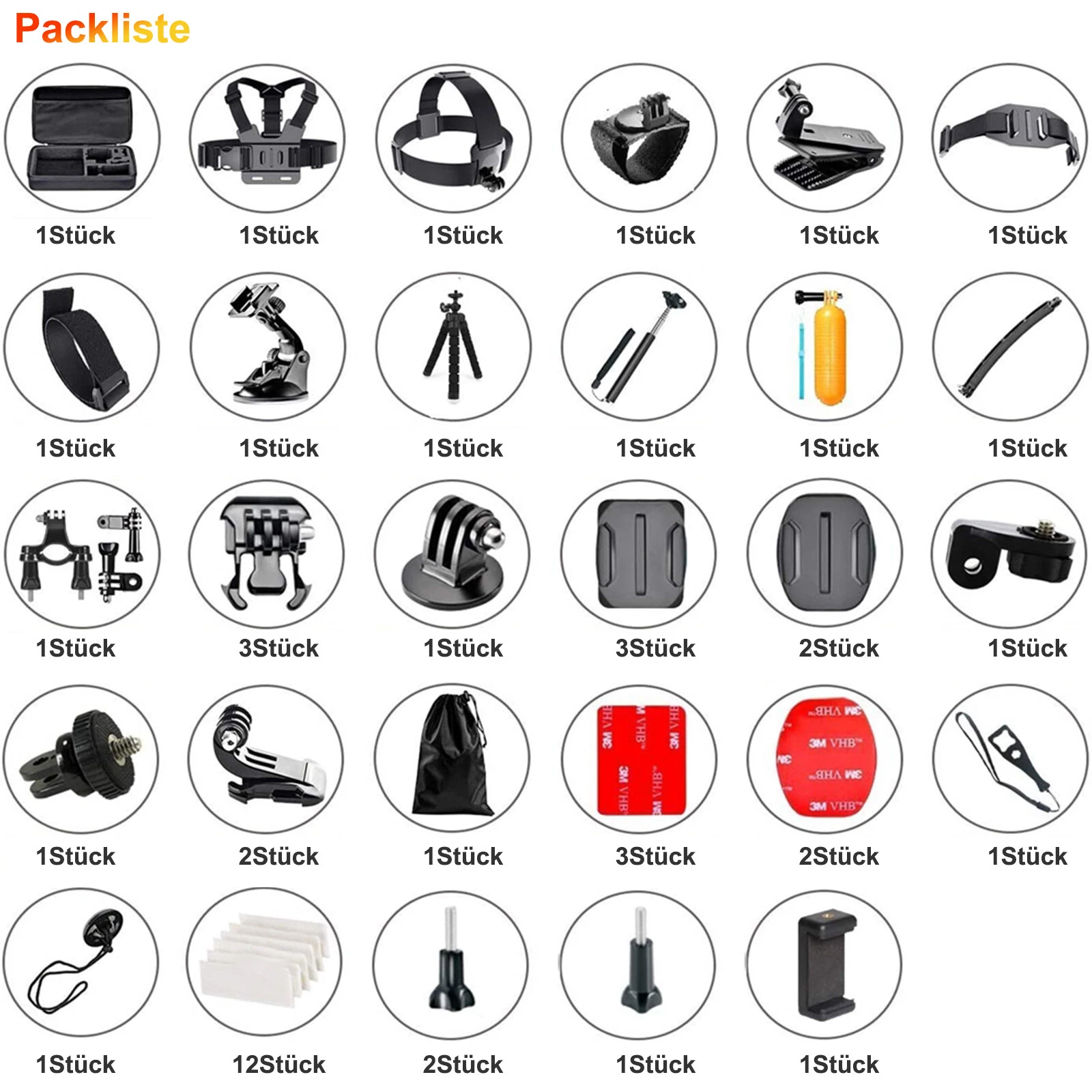 52-in-1-Sport-Action-Kamera-Zubehör-Kit kompatibel mit Campark ACT74 ACT76 / AKASO EK7000 / Crosstour / APEMAN A80 A70 / DBPOWER / FITFORT / ENEK / Acko / Dragon Touch / Lightdow / Yi / Yuntab / Wewdigi / Amuoc / Wavetown / Lightdow / Victure / ODRVM /SJcam sj4000 sj5000 sj6000 sj7000 GoPro HERO 7 HERO (2018) / HERO6 Black / HERO5 Black / HERO5 Session / GoPro HERO4 Session / GoPro HERO Session / GoPro Hero+ LCD / Gopro 4 3+ 3 2 1 / vemont / victsing / AEE / iTrunk / Sony Sports DV und mehr.