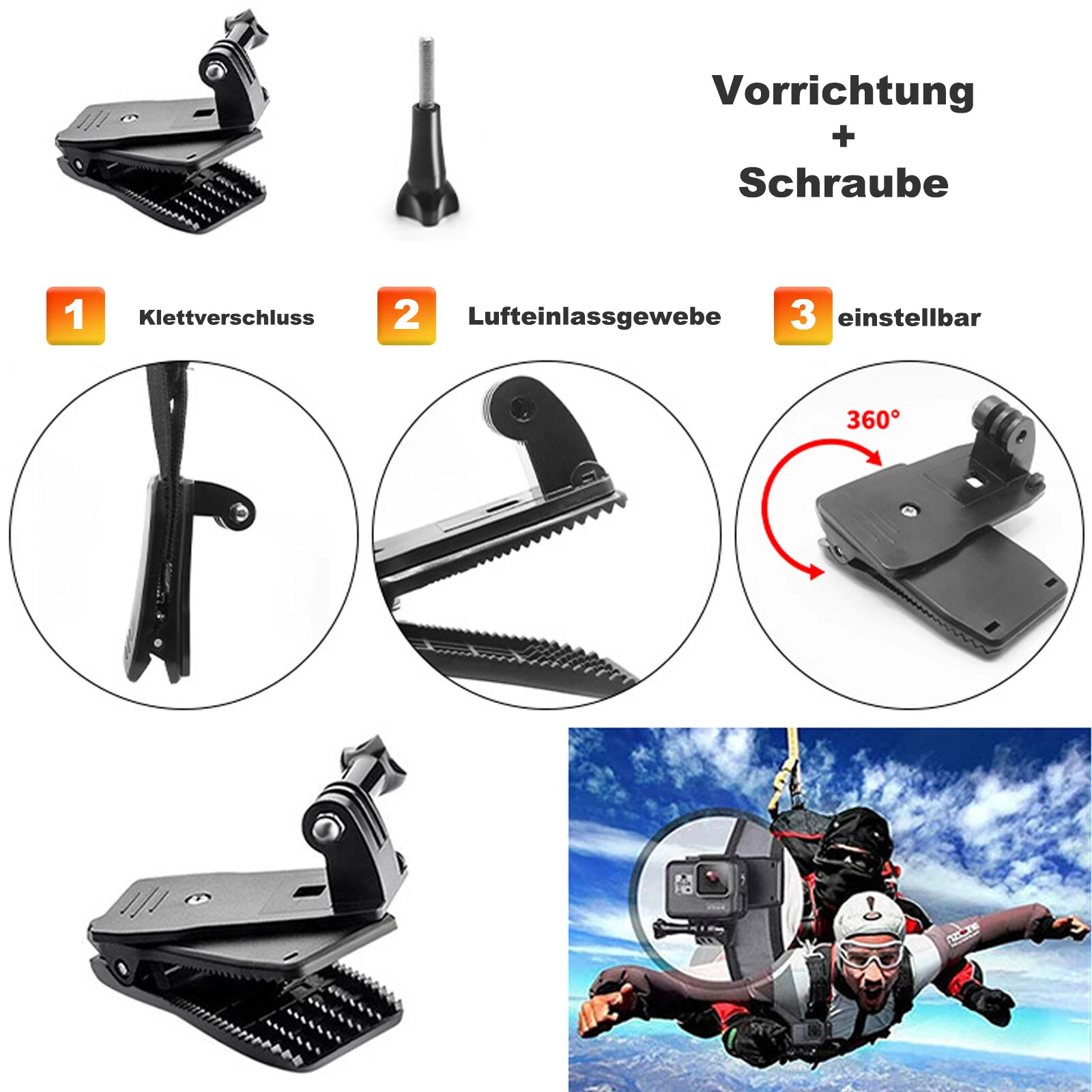 Rucksackgurt Schnellverschluss Klemmhalterung mit 360-Grad-Drehung erfüllt die Anforderungen der Benutzer mit unterschiedlichen Richtungen und Winkeln; Einfach am Rucksack, Hut usw. befestigen oder entfernen. Antibeschlag-Einsätze: Wiederverwendbar. Verhindert das Beschlagen Ihres GoPro-Kameragehäuses.