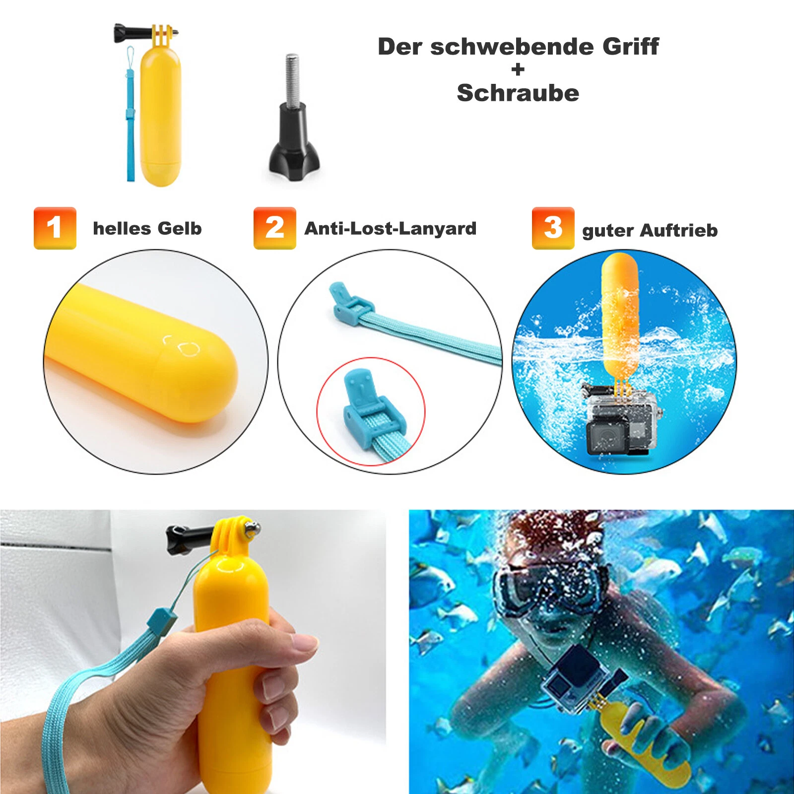 Einziehbares Mini-Stativ mit Kugelkopf und klappbaren Beinen ist leicht und tragbar, einfach zu verstauen; Einbeinstativ ist stabil genug, um Ihre Kamera zu halten; Der schwimmende Griff mit leuchtend gelber Farbe macht die Kamera leicht im Wasser zu finden und verhindert, dass sie verloren geht oder herunterfällt. Um Fotos aufzunehmen, ohne andere Personen um Hilfe zu bitten, aktivieren Sie Self-Service-Fotos.