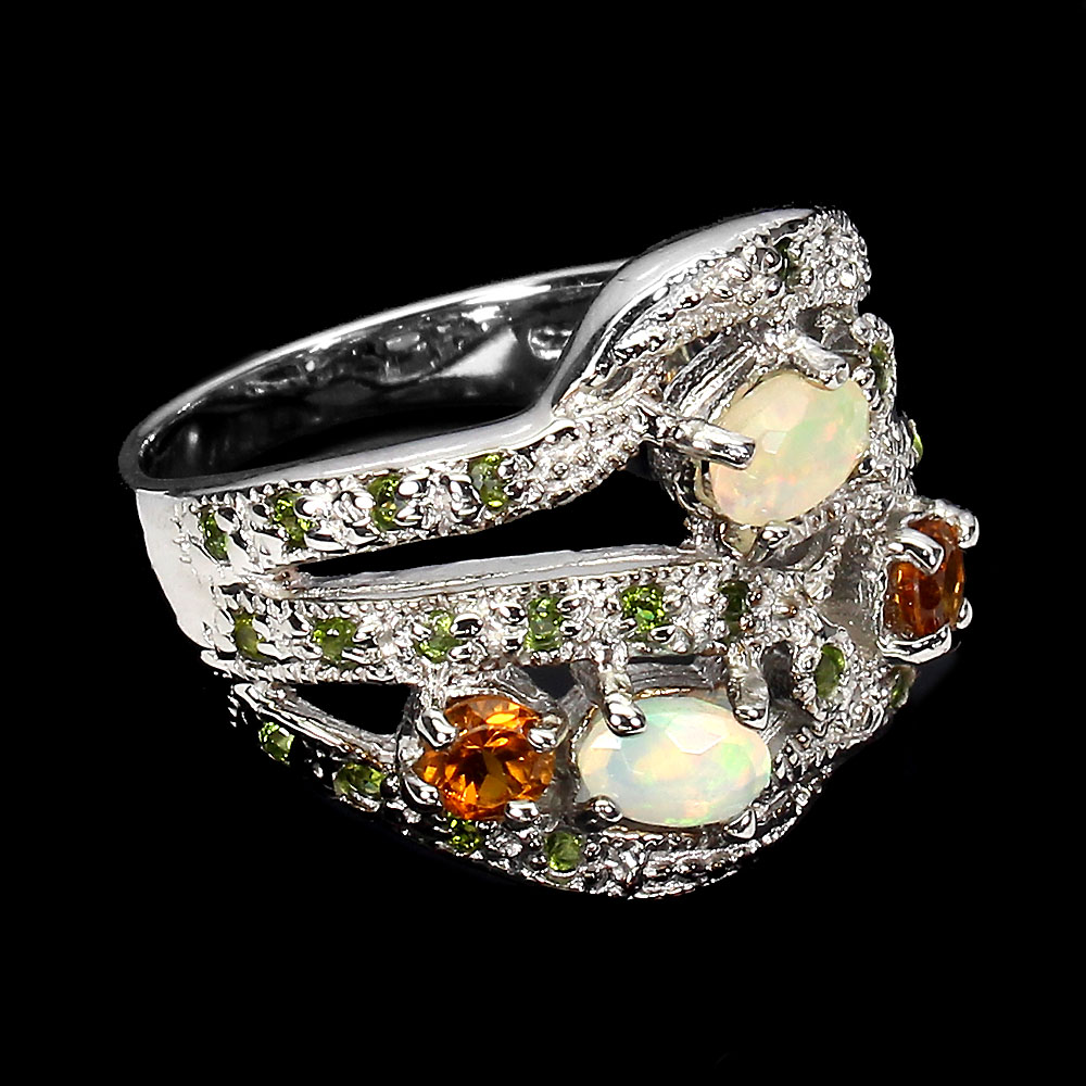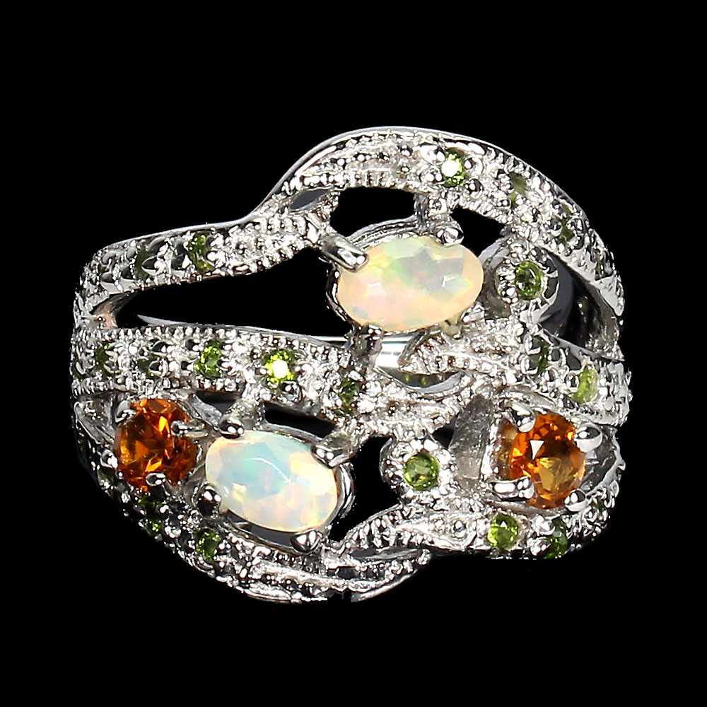 925 Sterling Silver Ring Oval Fire Opal Citrine Natural Gemstone Jewelry Size 7