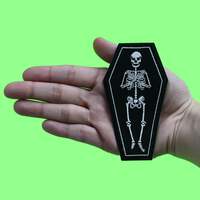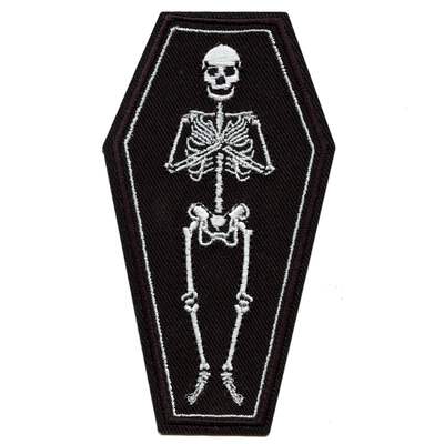 Transform any piece of clothing or accessory into a spooky statement with our Skelton Laying in Coffin Patch! This embroidered iron-on patch features intricate details of a skeleton laying in a coffin, adding a touch of creepy charm. Stand out and make a statement with this unique accessory.