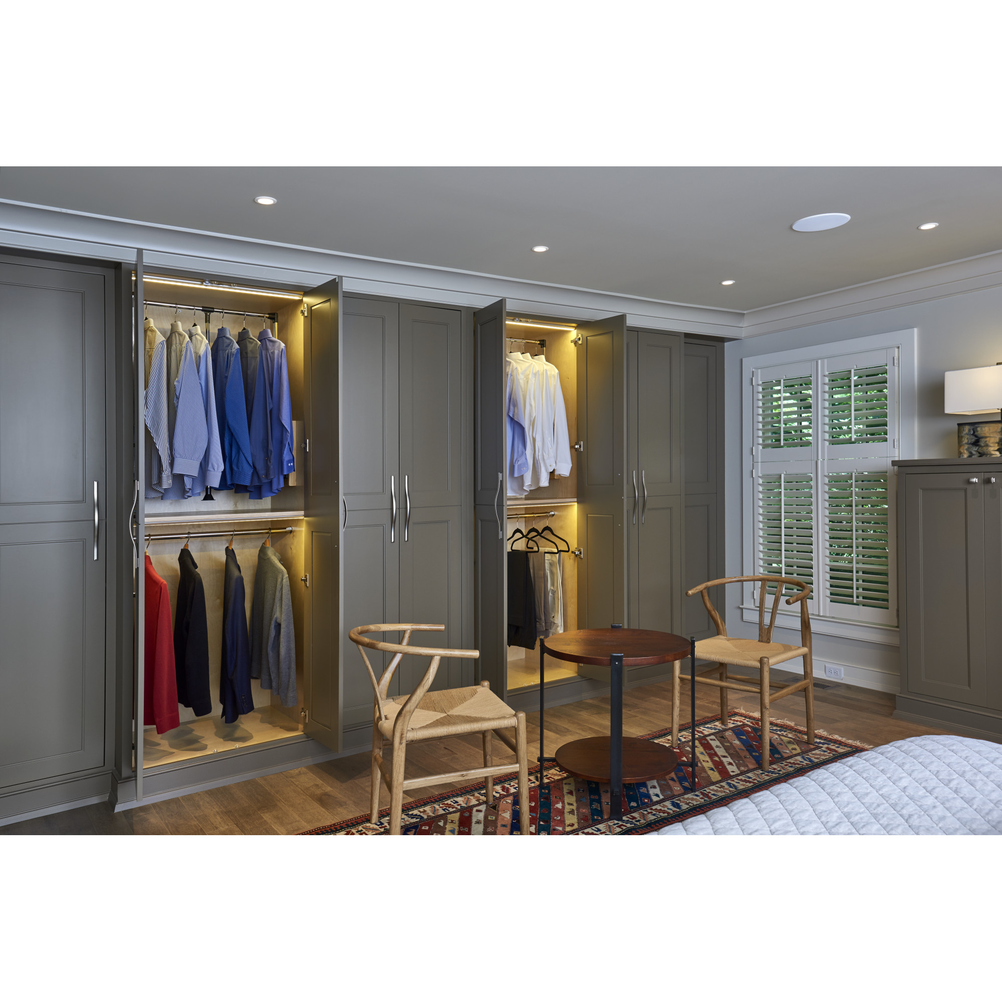 Don't settle with a closet that's plain and give yourself more a functional way of storing your clothing. Give your closet more space with this adjustable Pulldown closet rod from Rev-A-Shelf.