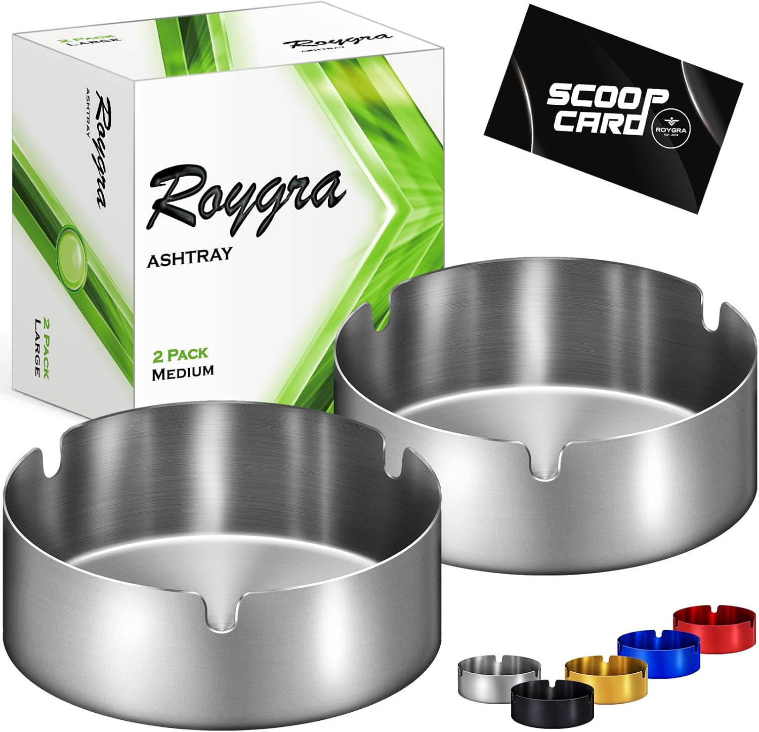 Roygra Ashtray 2 Pack, Stainless Steel Ash Tray for Indoor or Outdoor Use, Unbre
