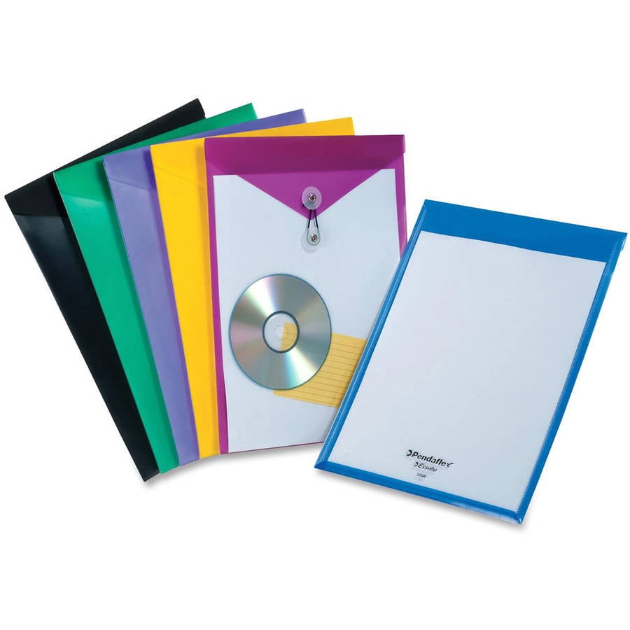 Poly Envelopes feature roomy pockets and a flap with elastic cord and button closure to keep documents secure inside. Full-length, open-top pocket on back keeps supporting material at hand. Two-tone translucent polypropylene construction allows instant identification of contents inside the letter-size envelope.