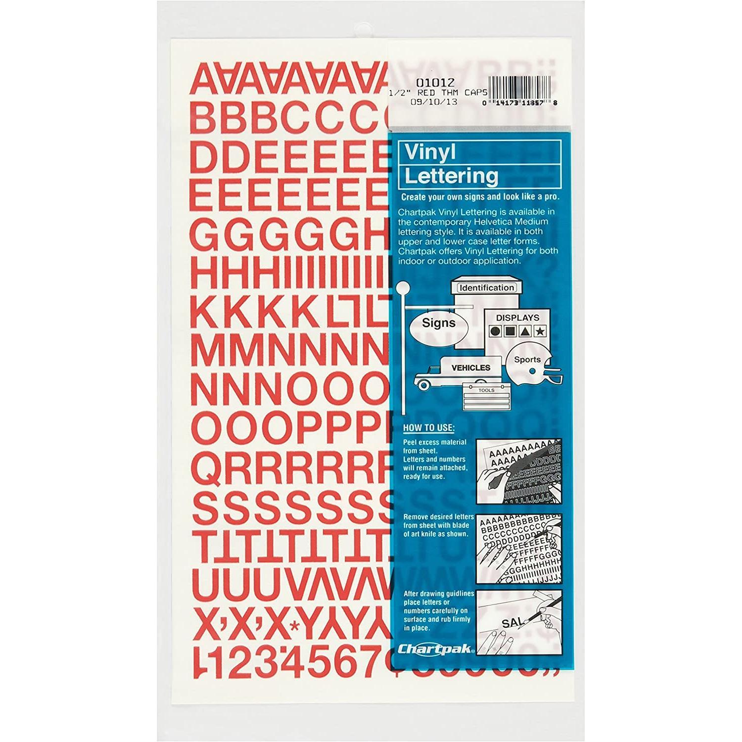 Chartpak Self-Adhesive Vinyl Capital Letters and Numbers, 1/2 Inches High, Red,