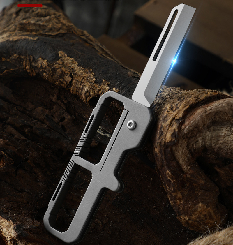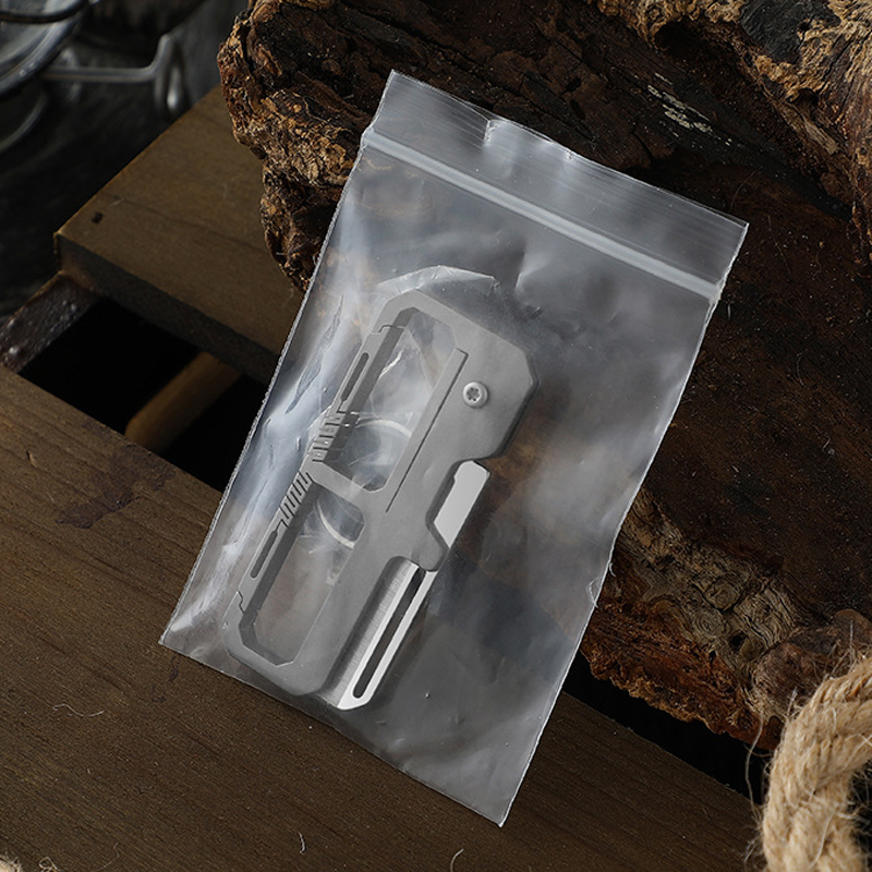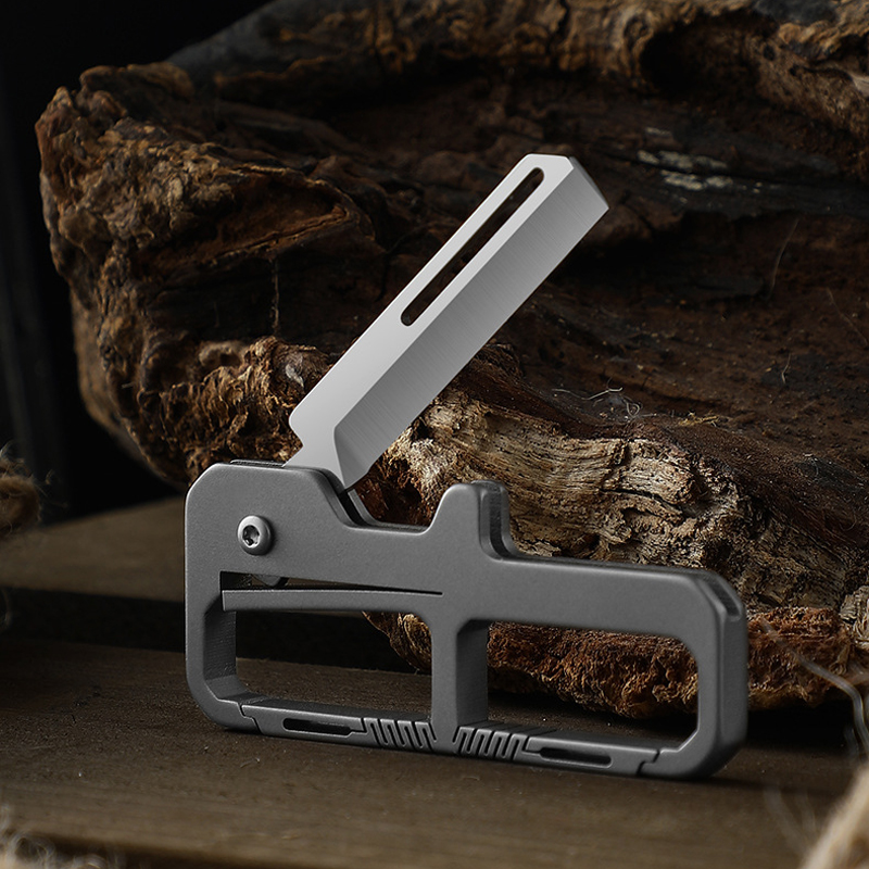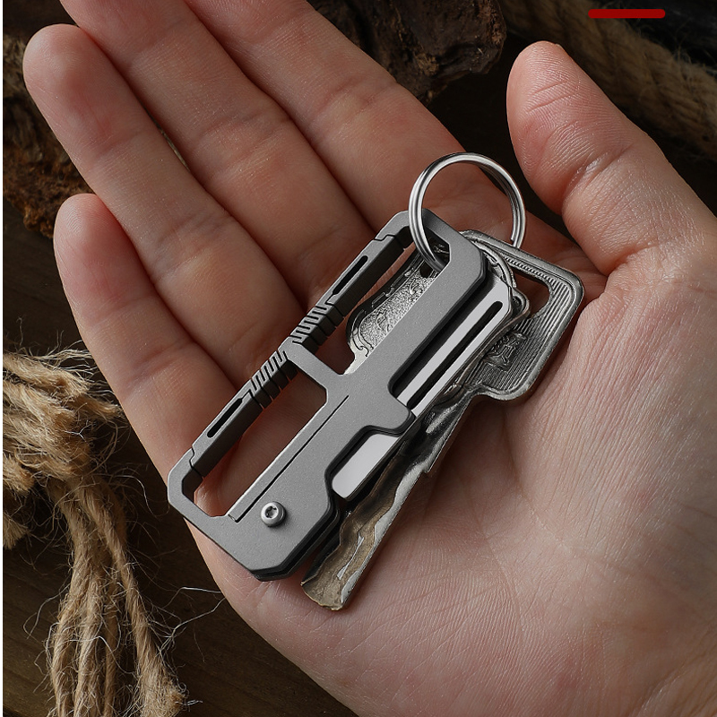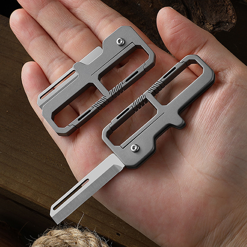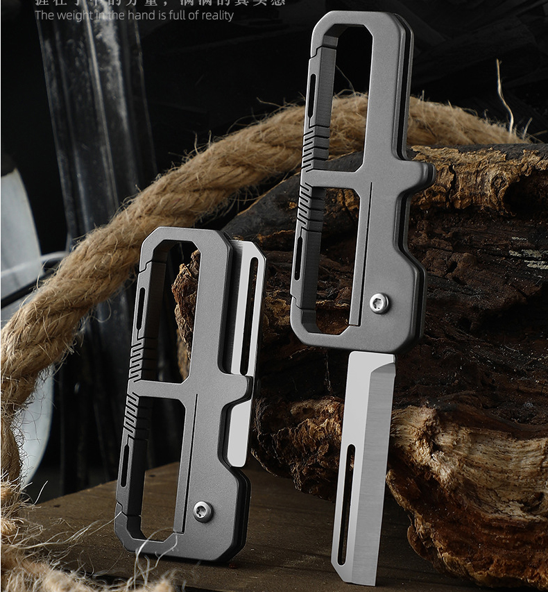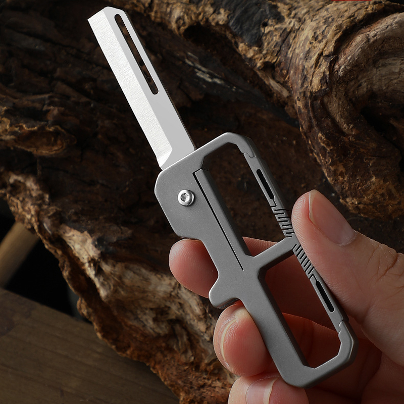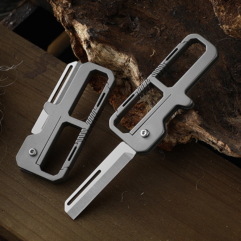 Details: TC4 titanium alloy + 420 Stainless Steel. The portable size and the folding blade make it easy to carry along. It's a nice mini knife for daily use. You can use it as a keychain hook. You can put it on your belt loop.