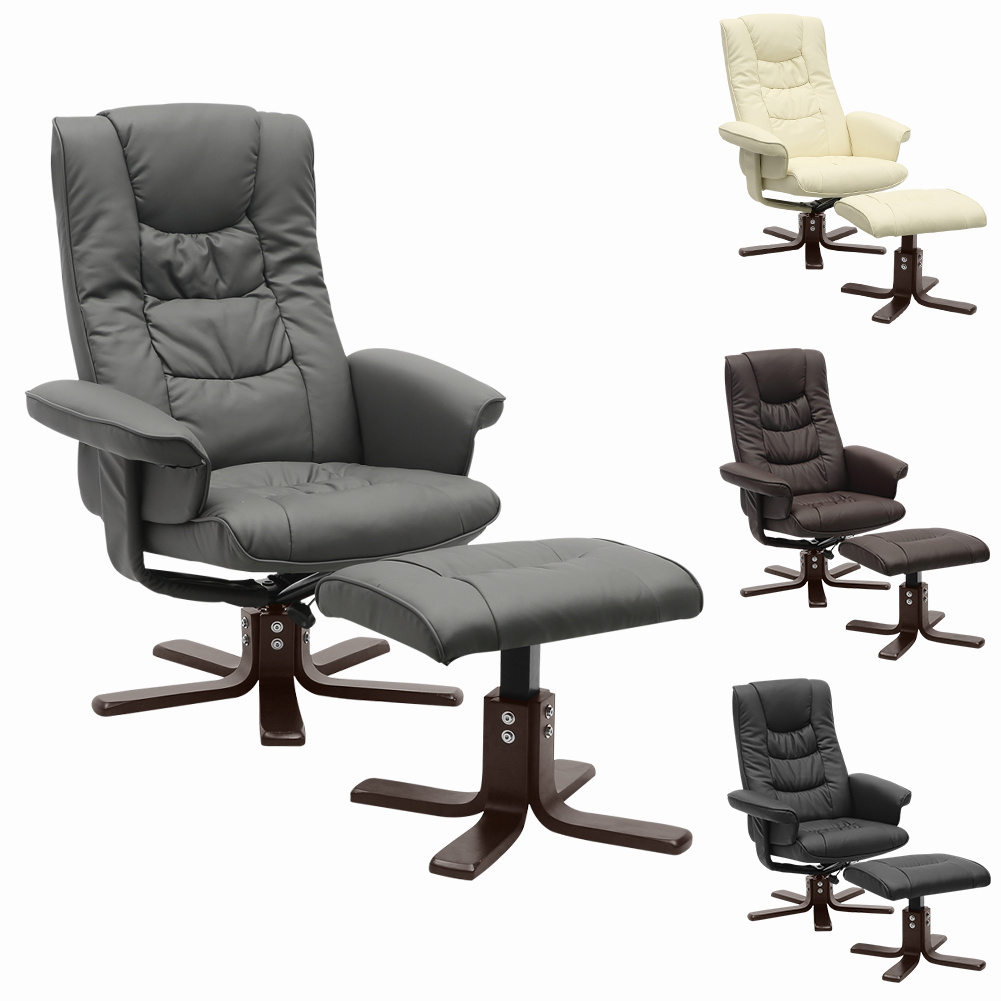 TV Armchair Recliner Set Lounge Chair with Footrest Stool PU Wooden Base