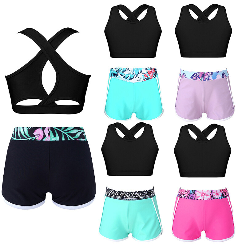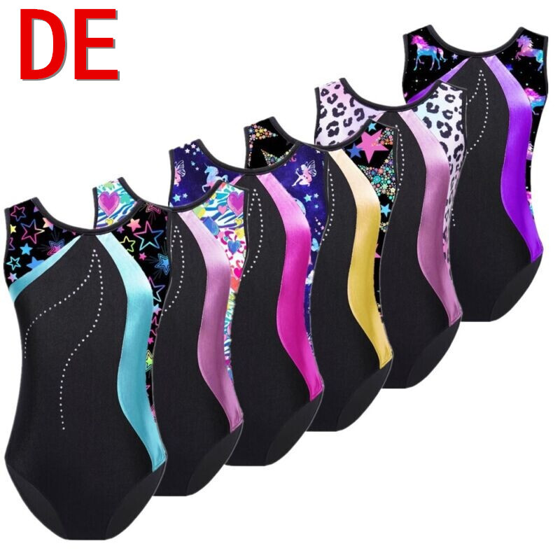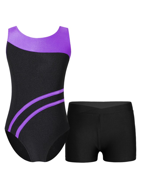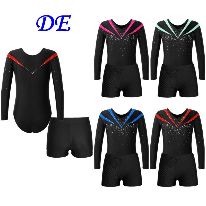 DE iEFiEL Mädchen Gymnastik Outfit Trikot mit ärmellosen Cross Back Weste +Short