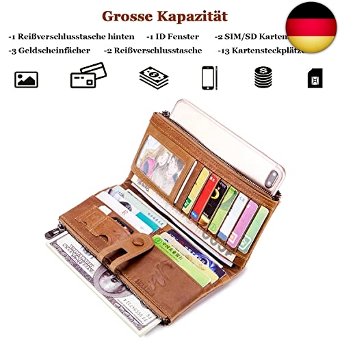 【ECHTES LEDER】 Damen Geldbörse made of soft echtes leder, soft to touch and wear-resistant, top workmanship, multi-coloured. Wird mit Geschenkbox geliefert. Es ist ein großartiges Erlebnis, diese großartige Brieftasche für Frauen zu benutzen