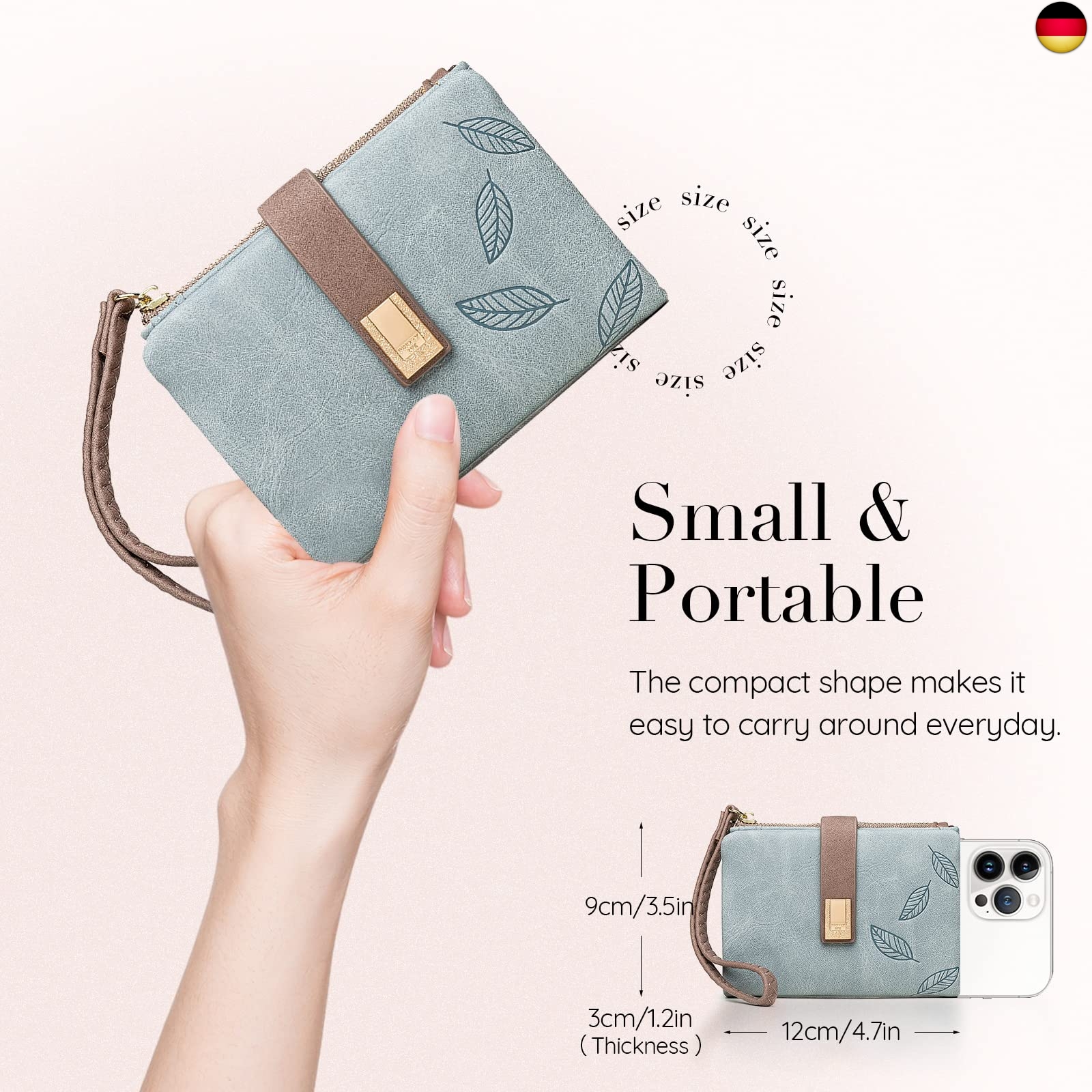 【SLIM SIZE & MINIMALIST STYLE】Dieses kleine Bifold Portemonnaie Geldbeutel ist 4.65 "L x 3.54 "W x0.79 "H, Gewicht 0.18lb, minimalistisches Design, klein und zart, es ist einfach zu tragen, ob halten Sie es auf der Hand oder legen Sie es in Ihre Tasche, leicht und schlank Frauen Brieftasche passt in Ihre Handtasche, Rucksack, Crossbody, Jeans Vorder- oder Gesäßtasche, etc