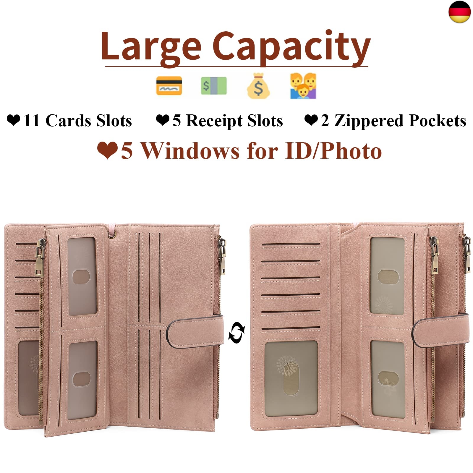 【KAPAZITÄT & PRAKTISCHE FUNKTION】Die schlanke Bifold Damen Geldbörse hat 10 Kartenfächer, genug, um die meisten Karten zu halten, 1 extra langes Bargeldfach und 1 seitliches Reißverschluss-Münzfach, Snap kann Ihre Karte vor dem Fallen schützen, nicht zu sperrig noch zu klein. Es ist ideal, um Ihre täglichen Notwendigkeiten zu halten und bieten gute Hilfe für Ihren täglichen Gebrauch. Die beste Wahl, um sperrig aussehende Geldbörsen zu vermeiden