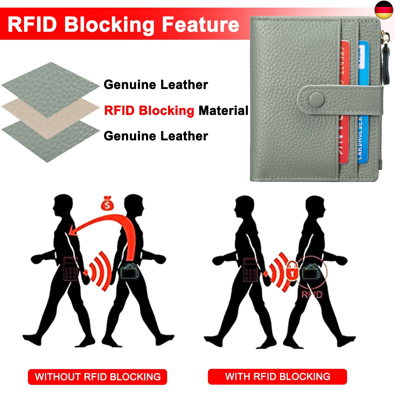 【SAFETY & PRIVACY】-- Diese portemonnaie damen klein rfid blocking ist mit einem speziellen Futter entworfen, schützt die wertvollen privaten Informationen auf RFID-Chips in Ihren Kreditkarten und Debitkarten von unbefugten Scans gespeichert, die Ihre persönlichen Informationen vor Diebstahl zu verhindern.Es wird mehr Sicherheit mit dieser schlanken rfid Brieftasche sein