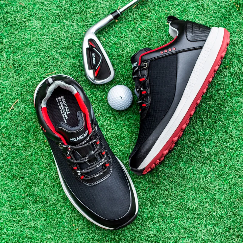Waterproofing: Playing golf often requires being in outdoor environments with unpredictable weather conditions. Golf shoes, particularly those made with waterproof materials or waterproofing technology, help keep golfers' feet dry and comfortable even in wet or rainy conditions. This advantage ensures that players can concentrate on their game without worrying about wet feet or slippery conditions affecting their performance.