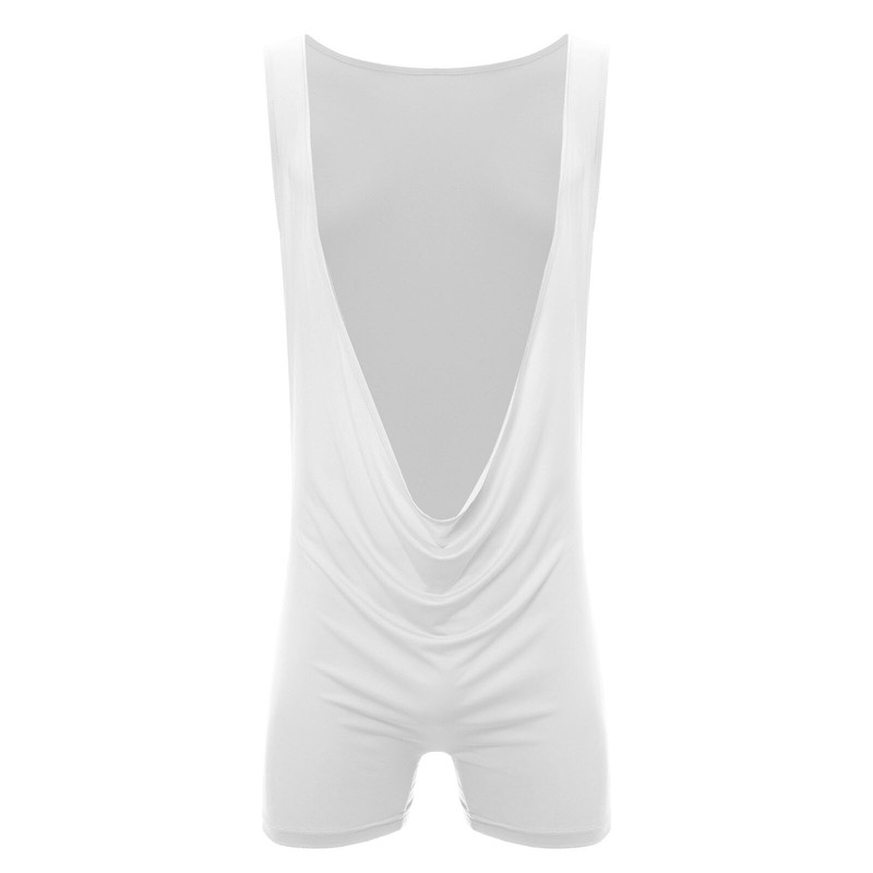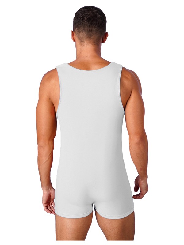 Ein Fitness-Sport-Jumpsuit für Männer, ärmellos, mit bequemen breiten Trägern und Shorts-Saum.