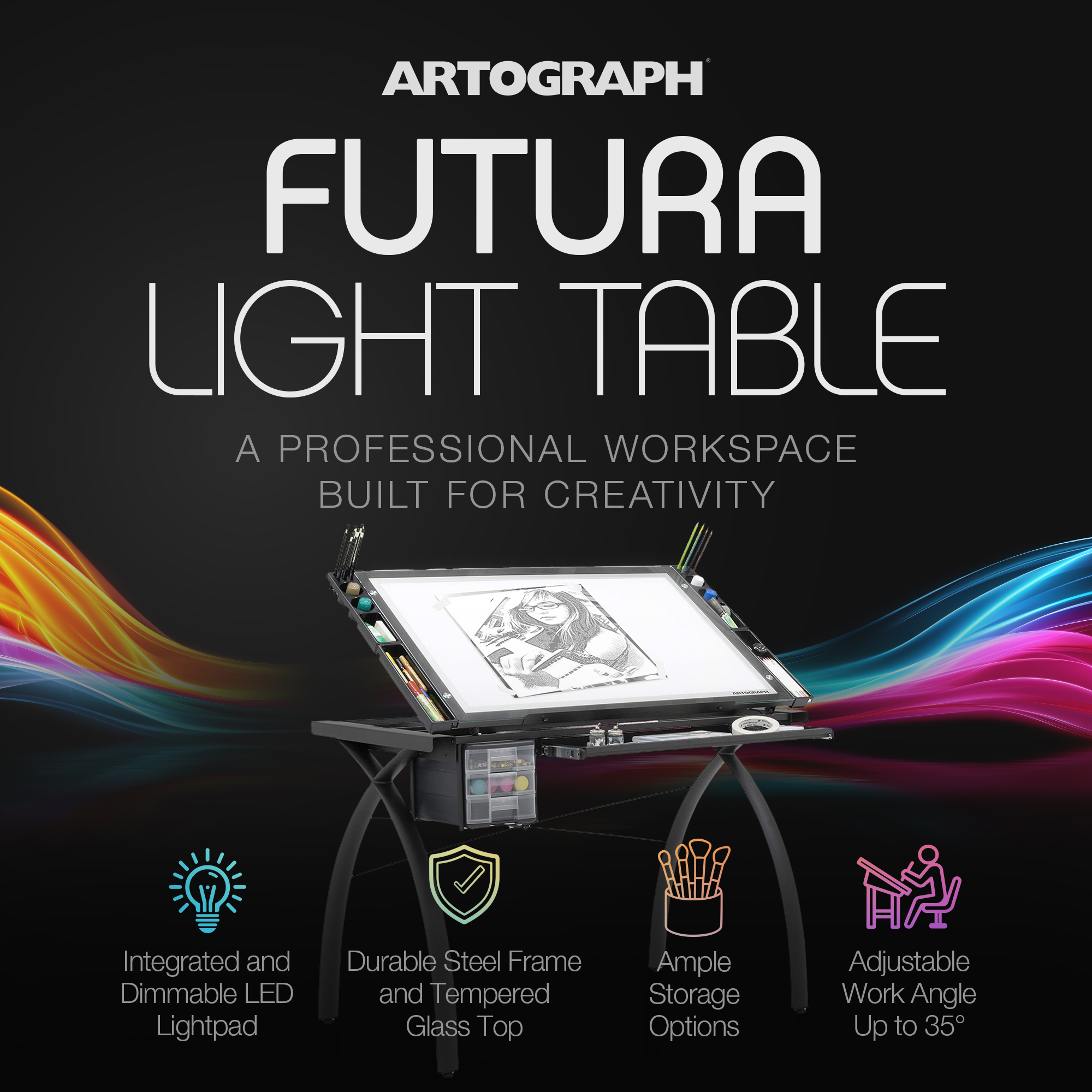 Unleash your creative side with a creative space of your own with the Artograph Futura LED Adjustable Drafting Table.