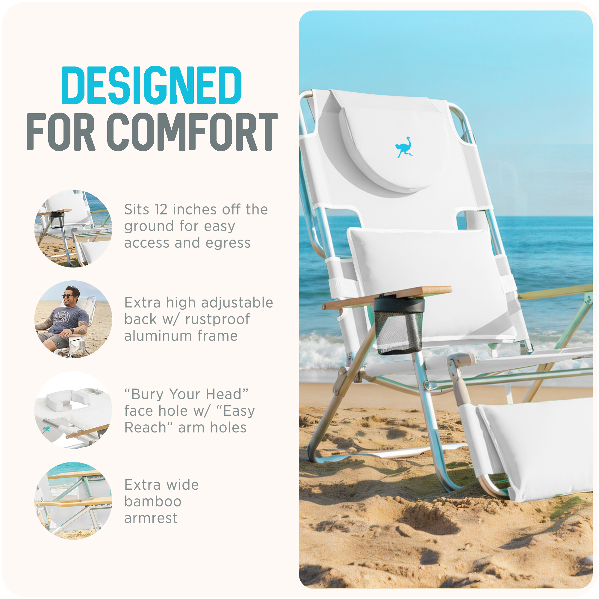 Take in some rays in the unmatched comfort of the Ostrich Deluxe 3N1 Lightweight Reclining Beach Chair, the ultimate companion for your beach, camping, or outdoor adventures.
