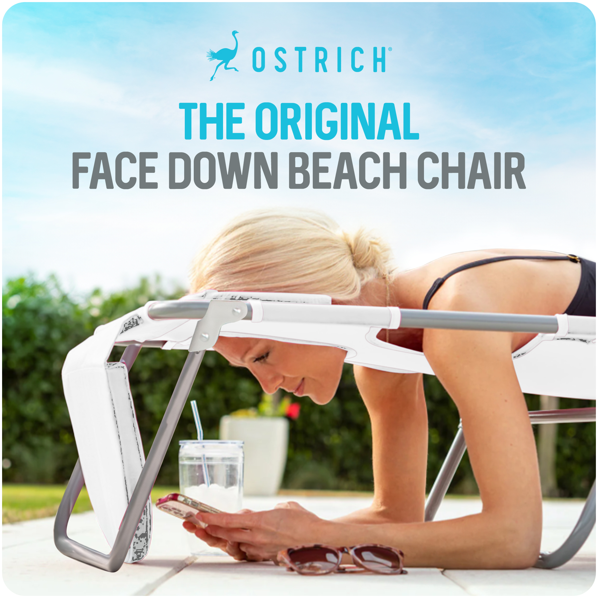 A day at the beach or sports outing isn't complete without a comfy chair! This deluxe pool chair features an extra high back, padded seat, and lumbar pillow giving you a cushioned seat you won't want to get out of. With the patented open/close face cavity, armholes, and 5-position adjustability, this outdoor folding chair allows you to comfortably lie on your back or stomach, perfect for poolside hangouts or tanning in your backyard. Whether you prefer to sit upright or lay flat, this sub-bathing chair can accommodate your desired position with 3 additional footrest options for 15 total configurations.