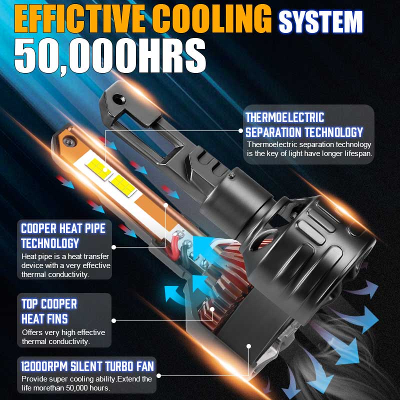 4, Upgrade Cooling System: Cooper heat pipe technology, durable aluminum body, built-in more powerful high-speed cooling fan, intelligent and efficient cooling capacity, ensuring ultra-low temperature, and a life of up to 50,000 hours.