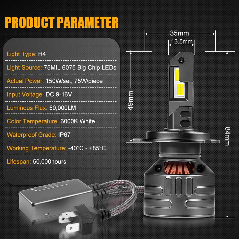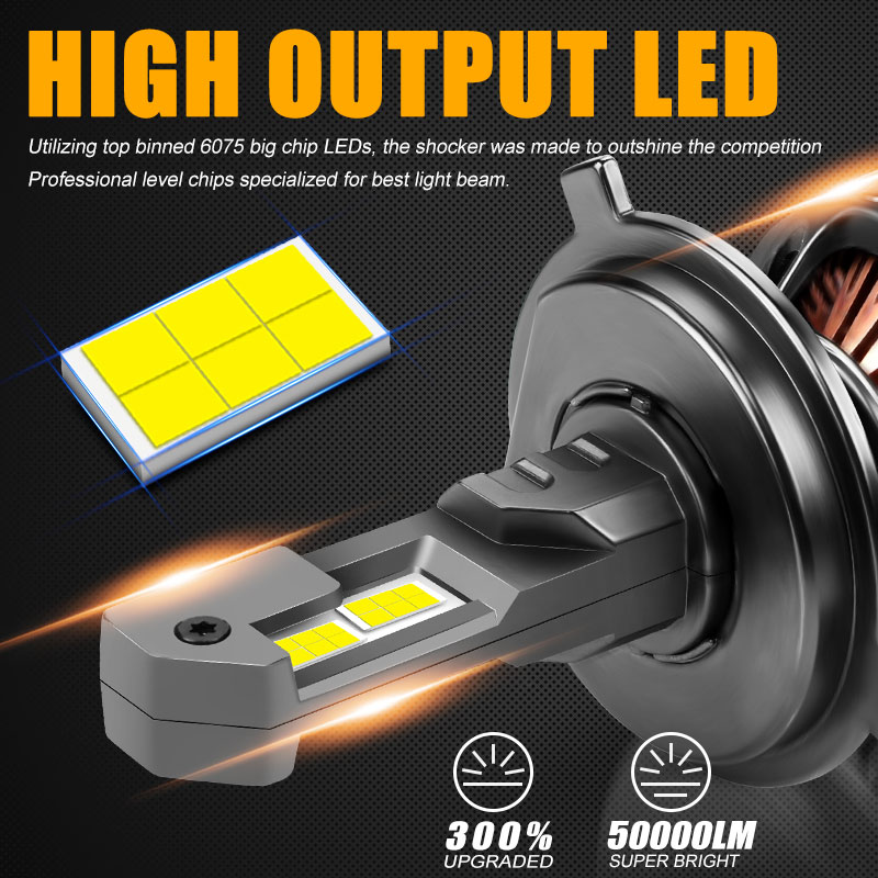 1,600% BRIGHTER THAN HALOGENS: Superior LED bulbs with high power 150W, 50,000LM per pair. The led headlight bulbs provide to 600% more light with a 6000K cool white clearer color. This 6 times brighter than your original halogen bulb.