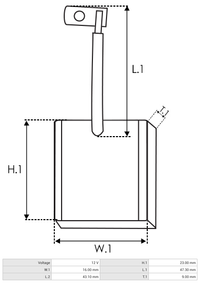 | Abmessungen der Kohlen: 9 x 16 x 23 [mm] |
