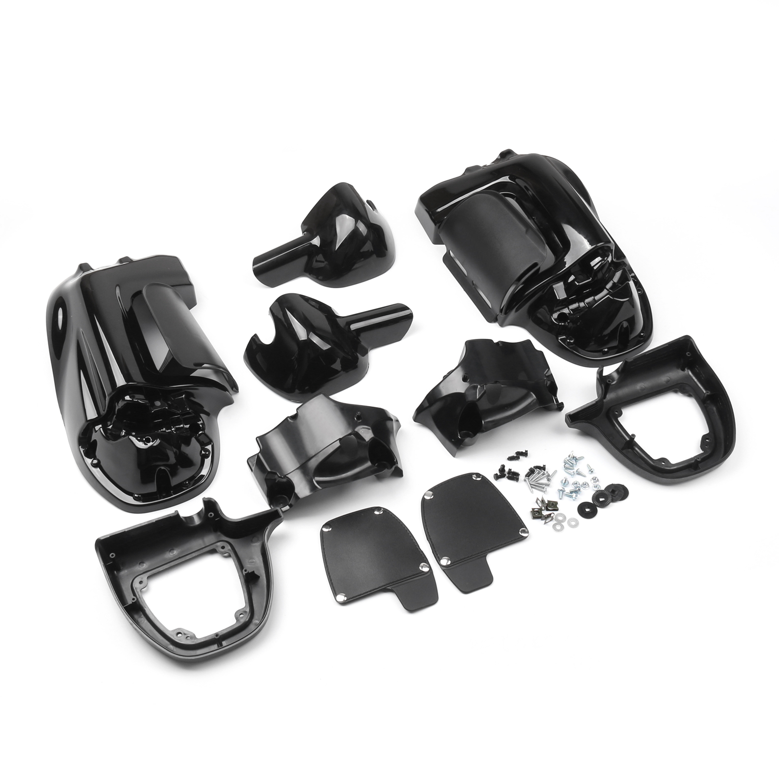 Also fits 1998-2009 FLTR by cutting off 2-1/2" the upper cap cover to clear the upper fairing bracket). Will not fit with Mustache Engine Guard