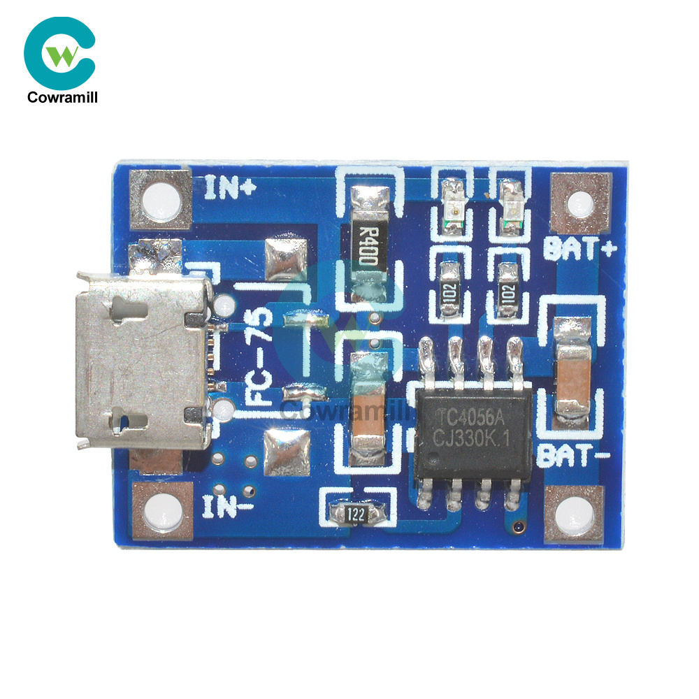This module is used to charge single lithium battery or multiple lithium batteries in parallel, the charging port can take power from USB.