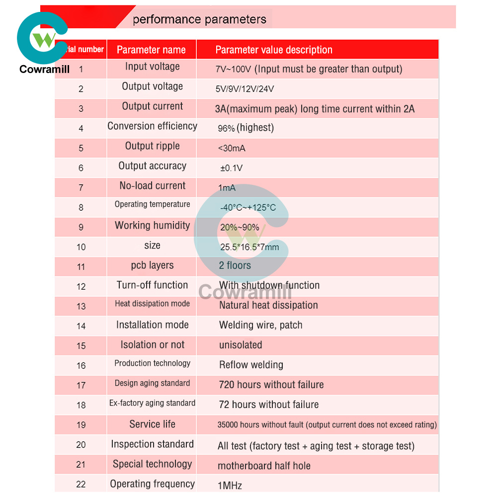 Fixed output 5V 9V 12V 24V,input 6-100V with overheat and overload shutdown protection