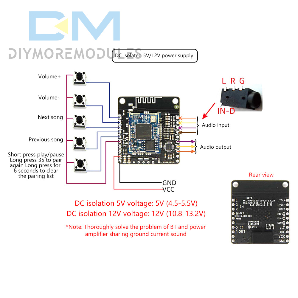 2, with DC isolated power supply: suitable for modifying speakers, amplifiers, car to increase the Bluetooth function, to solve the common ground current sound, noise