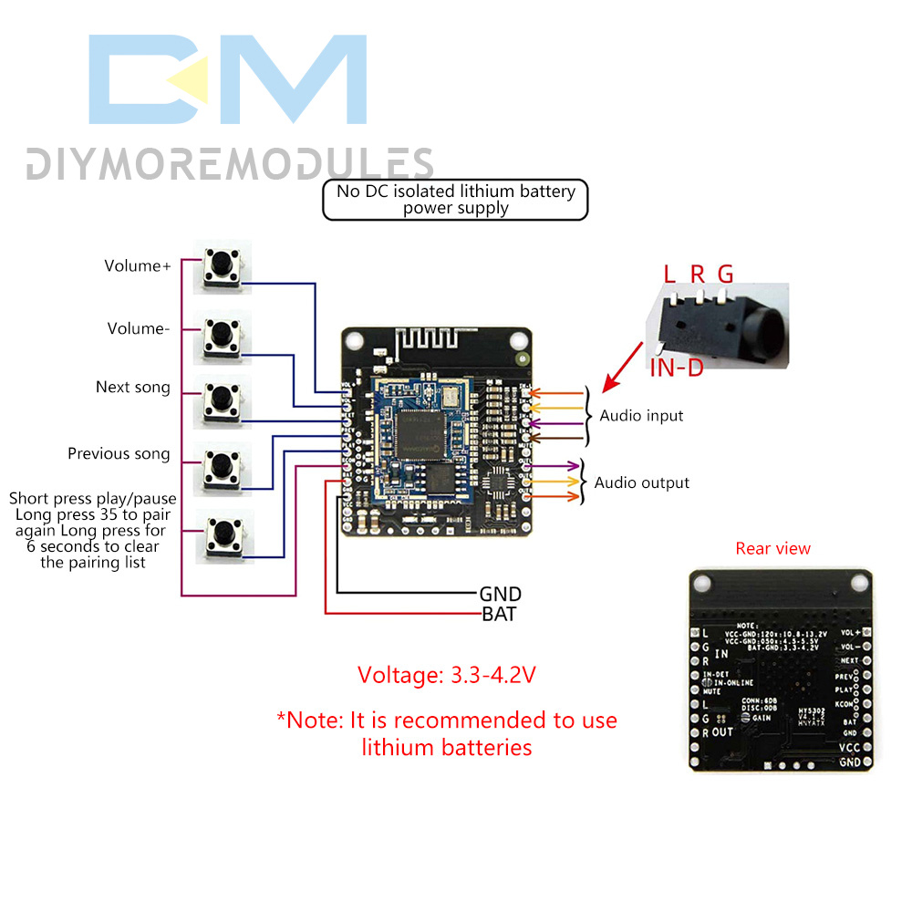 1, no DC isolation power supply: suitable for lithium battery power supply, used to modify the Bluetooth headset