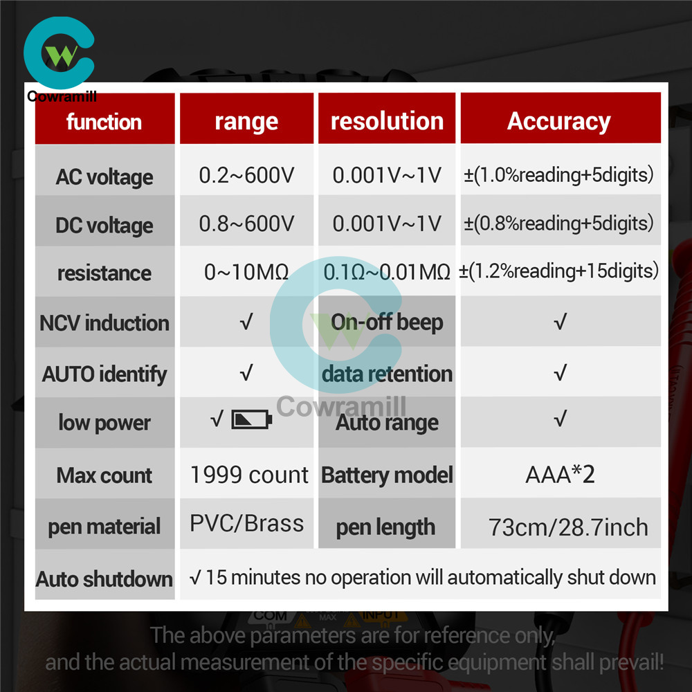 5. Power saving automatic shutdown mini multimeter: If the multimeter is not used within 15 minutes of being turned on, it will automatically turn off to save power and be more worry free!
