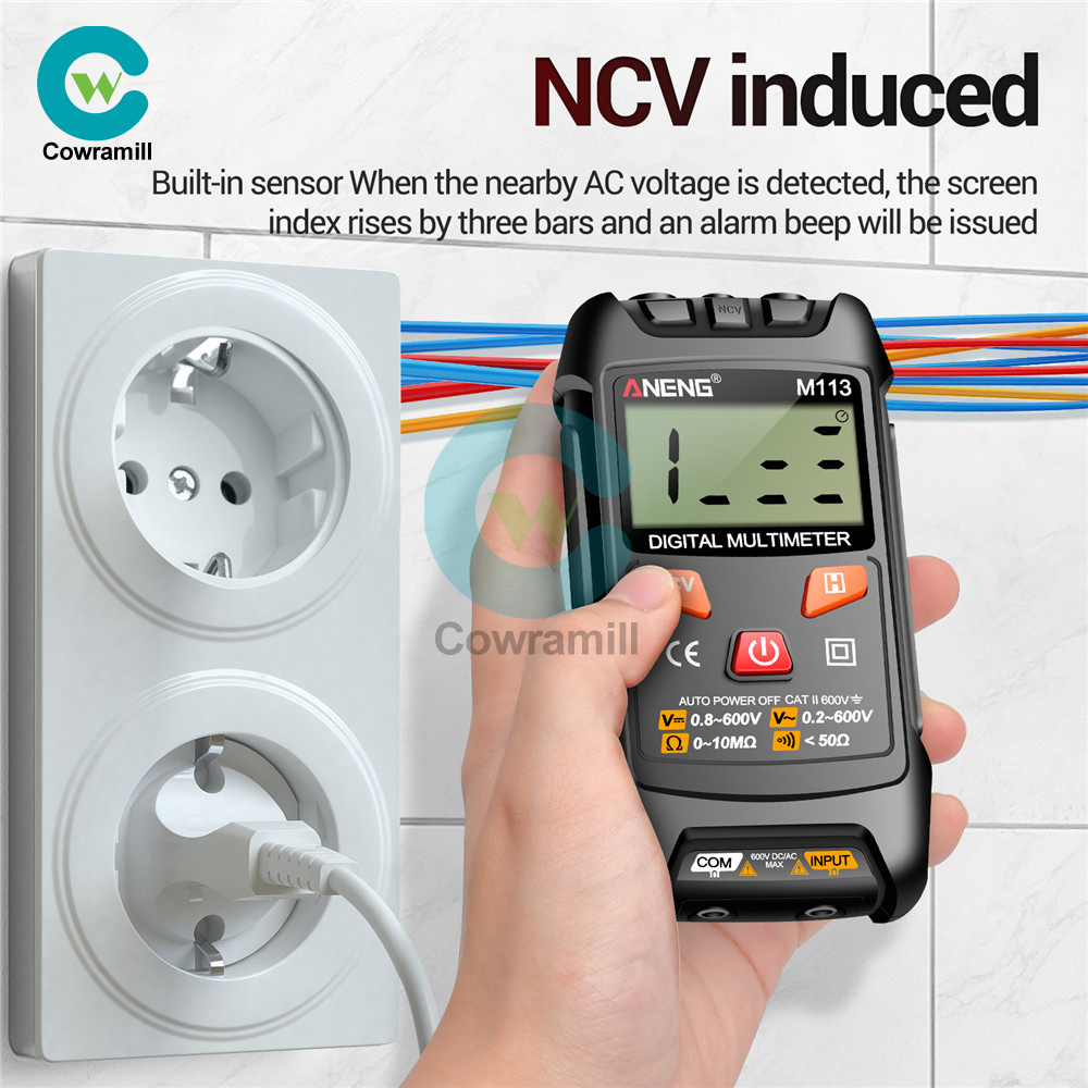4. Non contact induction NCV detection power supply: When a built-in inductor detects nearby AC voltage, the screen index will rise three times and an alarm beep will sound to prompt