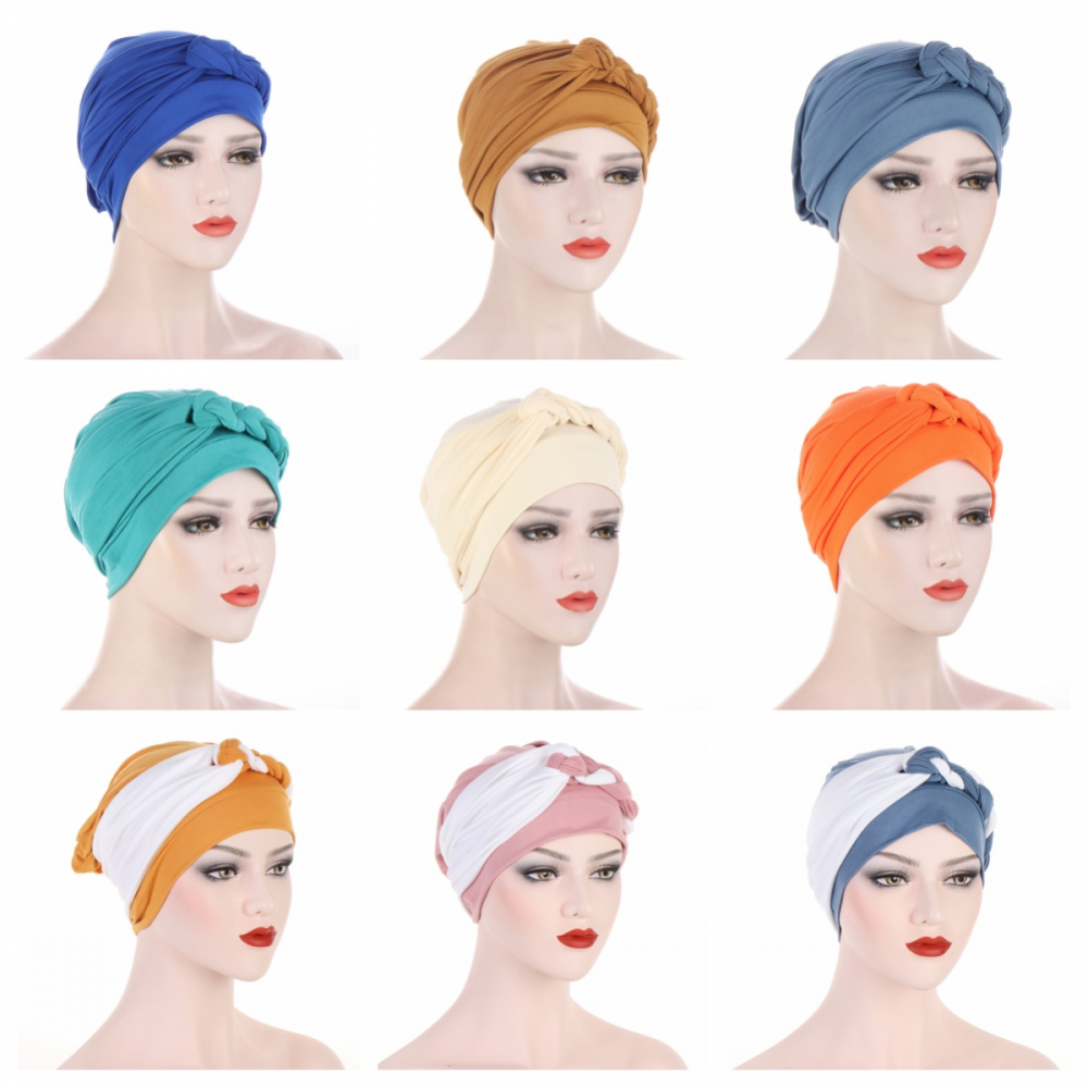 Women Braided Plait Stretch Turban Beanie Hat Hair Head Wrap Elastic Soft Cap