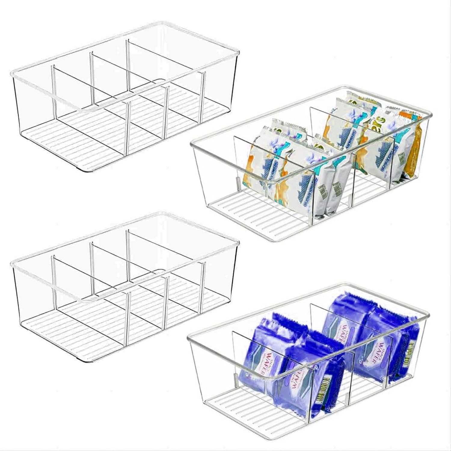 Keep your pantry organizer with AIYULONG 4 PCS Set of lightweight and sturdy plastic storage bins. Perfect for storing snacks, spice packets, and other pantry essentials. Make storage more simple and efficient with these clear organizer bins.