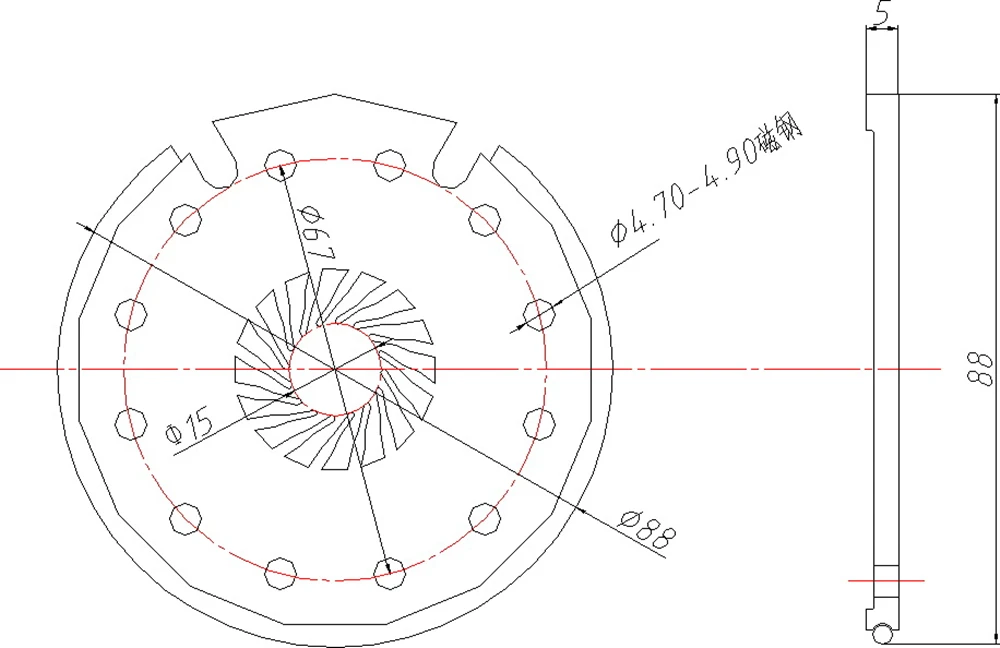 For the assembly of the magnetic steel disk, insert the two magnetic steel disks in pairs according to the following figure, and fix them with the snap spring. The assembled magnetic steel disk is as shown in the figure.