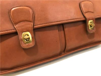 This is PRELOVED and in excellent used condition. This briefcase has been used and shows general signs of wear. There are oxidation on the hardware and obvious worn spots on the corners as you can see by pictures, these are typical wear of a used vintage leather briefcase. Please see photos and you will be the judge any wear takes away the beauty from this briefcase. This is not brand new but overall still in great condition with lots of life left in it. If you are very picky and hate any signs of wear, this brofecase is not for you. This is the High End Luxurious leather coach is famous for. It is absolutely a perfect carry on especially for students or for anyone who wanted a large size briefcase to carry their laptop, paperwork and MORE! This is really neat and classic! Beautiful BRITISH TAN leather that easily matches with anything you wear and size is very functional to use! really AWESOME! I am sure you will be please with your purchase. This would absolutely make a wonderful and useful gift fot someone special.