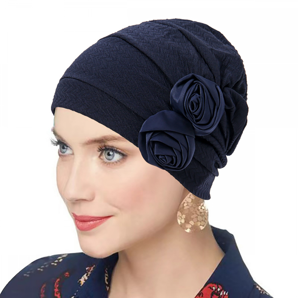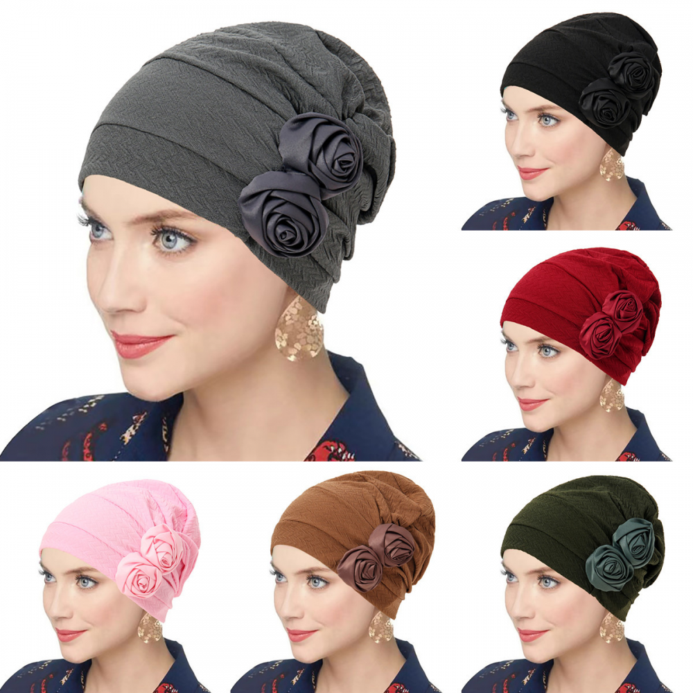 Women Solid Rose Flower Stretch Beanie Hat Headwear Hairband Turban Headwrap Cap
