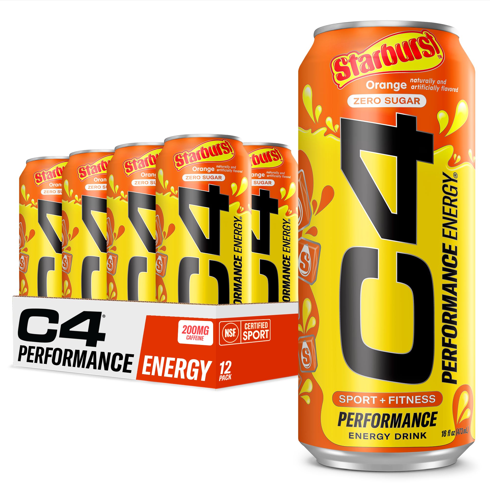 C4 Performance Energy Drink | STARBURST Orange | Zero Sugar Carbonated Preworkout Energy | 200mg Caffeine with Beta Alanine | 16 Fl Oz (12 Pack)
