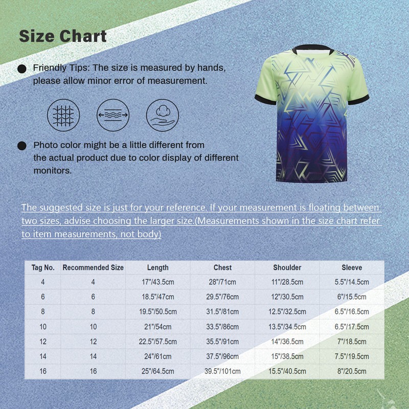 | Tag No. | Recommended Size | Length | Chest | Shoulder | Sleeve |