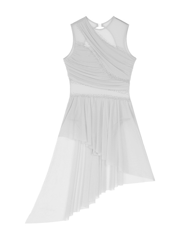 Womens Asymmetrical Hem Leotard Dance Dress Sleeveless Cross Back Dresses.