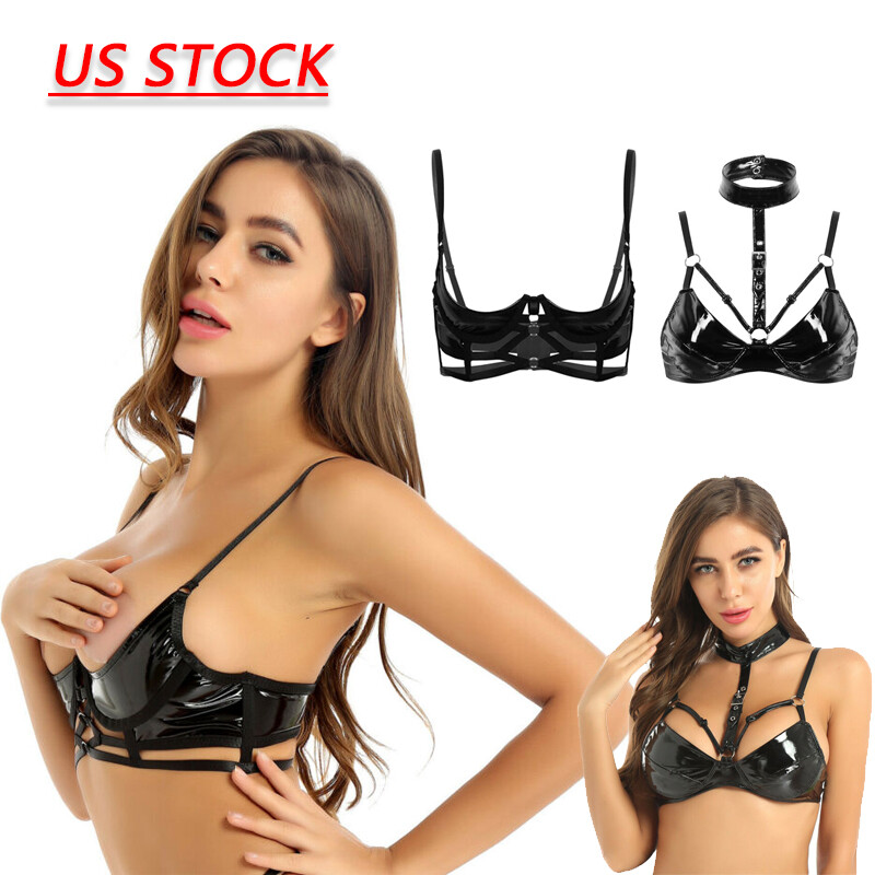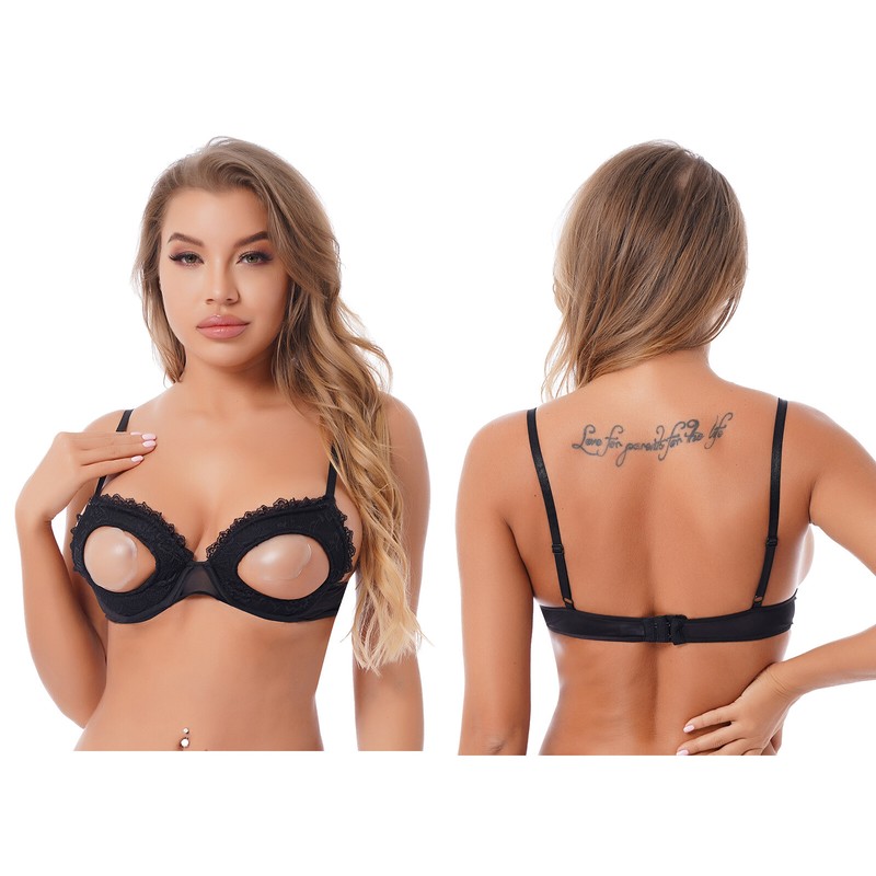 Womens Open Cups Underwired Bra Tops Adjustable Straps Sheer Mesh Brassiere Underwear.