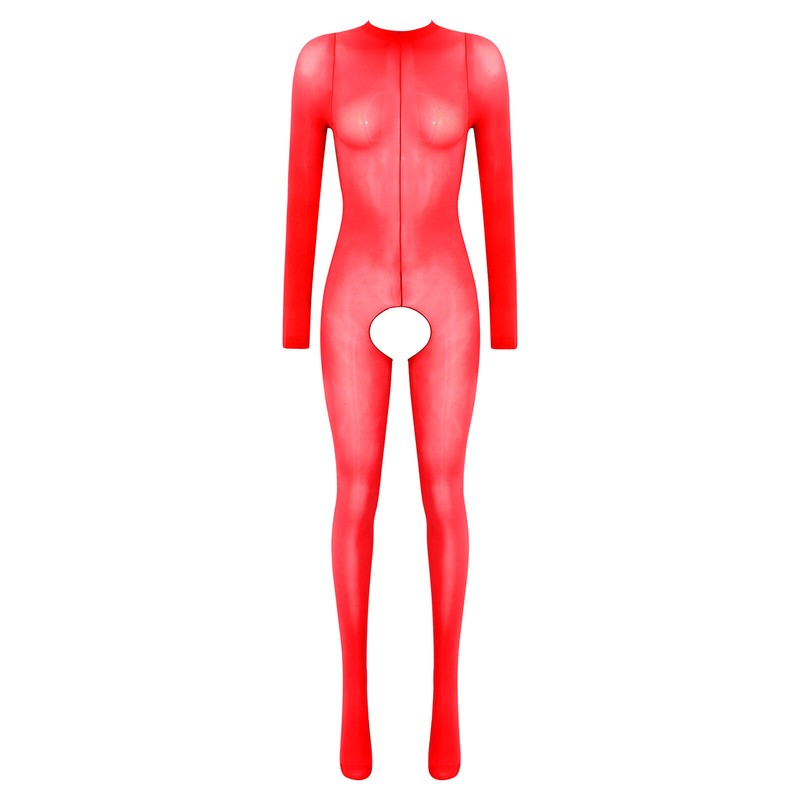 Glossy long sleeve unitard for women, good stretchy and close-fitting, one size fits most, it stretch and hug most body curves.