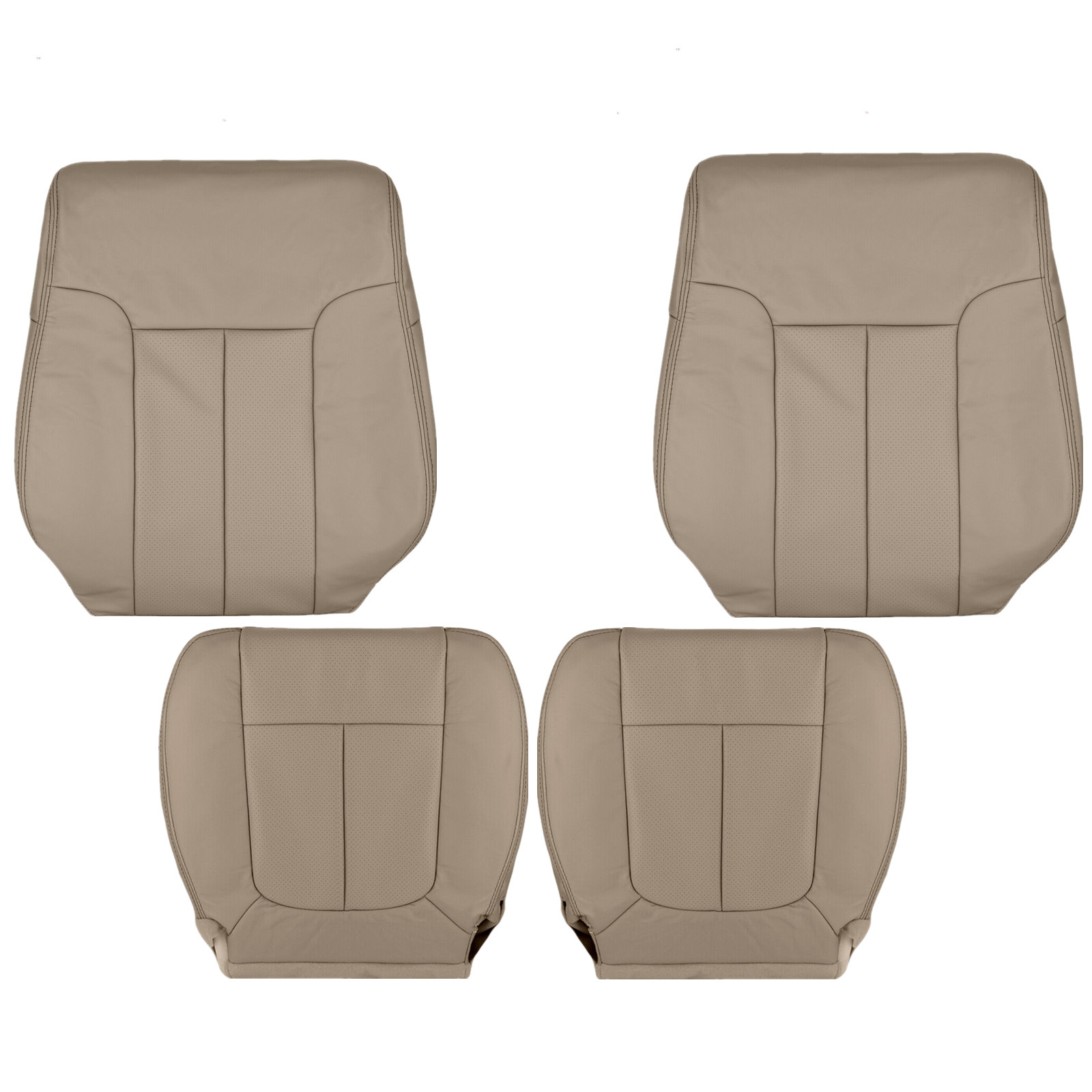 Name: For 2009 2010 2011 2012 2013 2014 Ford F150 Driver & Passenger Bottom & Lean Back Perforated Leather Seat Cover Tan