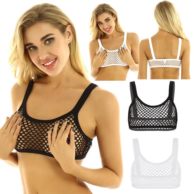Women’s see through fishnet camisole crop tops slim tank vest tops, pull on closure.