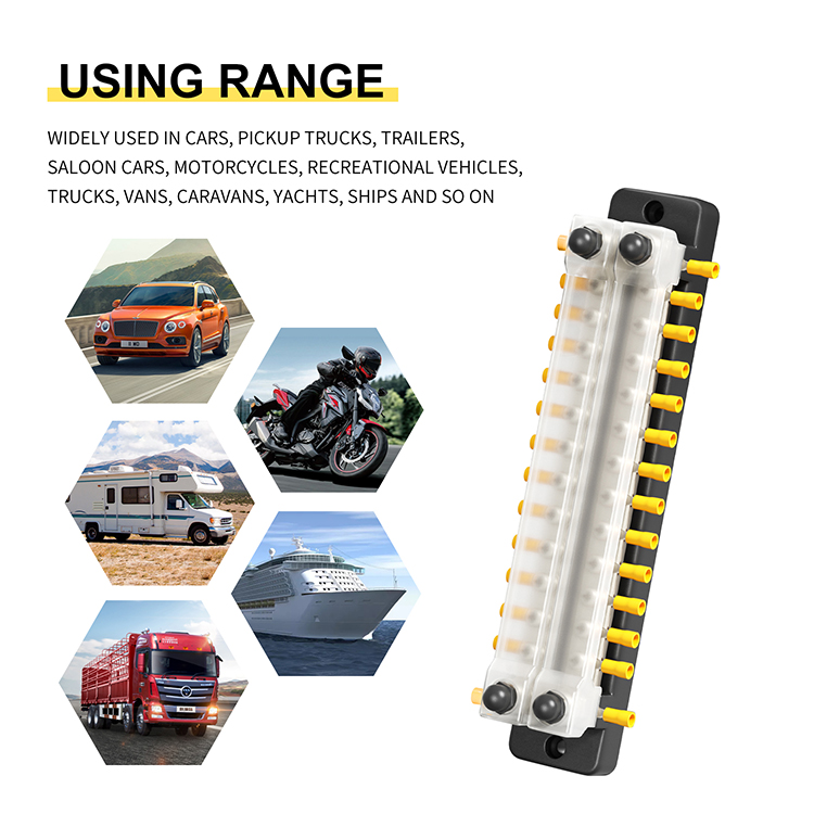 l Multiple terminal busbars are ideal for automotive and marine wiring, helping to organize And clean up messy wiring for all types of power and ground distribution