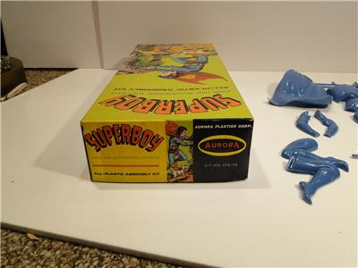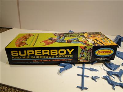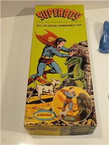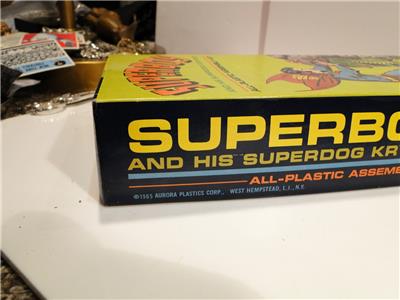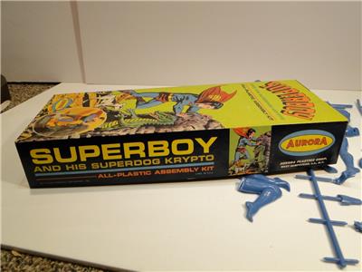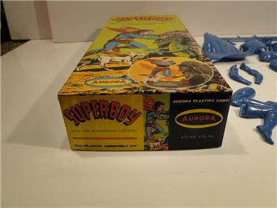 This is for a original 1965 Aurora kit no. 478-96 Super Boy and his Super Dog Krypto. The model is complete and undone. No instructions included. Box graphics are nice but someone pencilled on some of the frontwhich has been partially erased. Look at photos. Great original model to have with the movie coming out this summer.