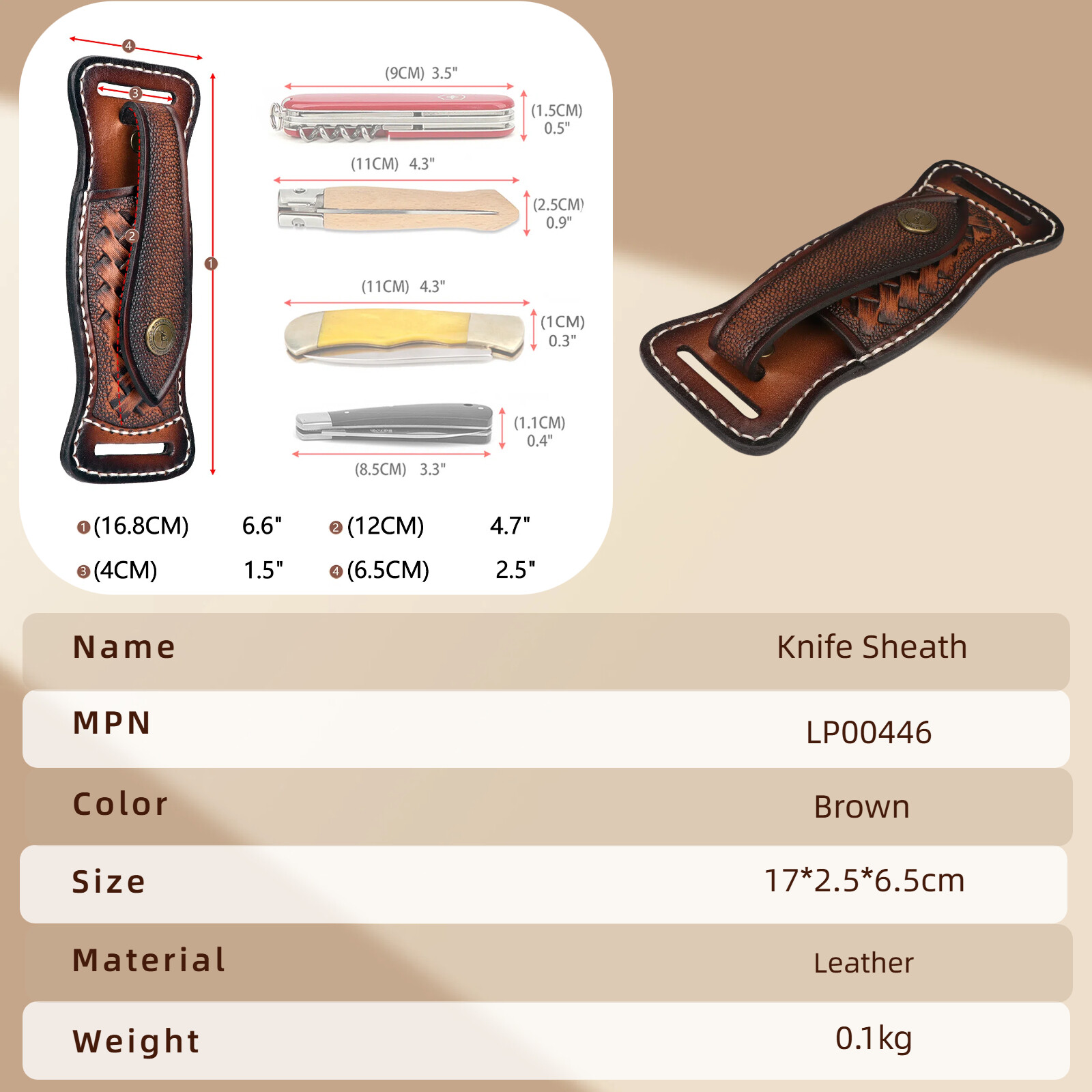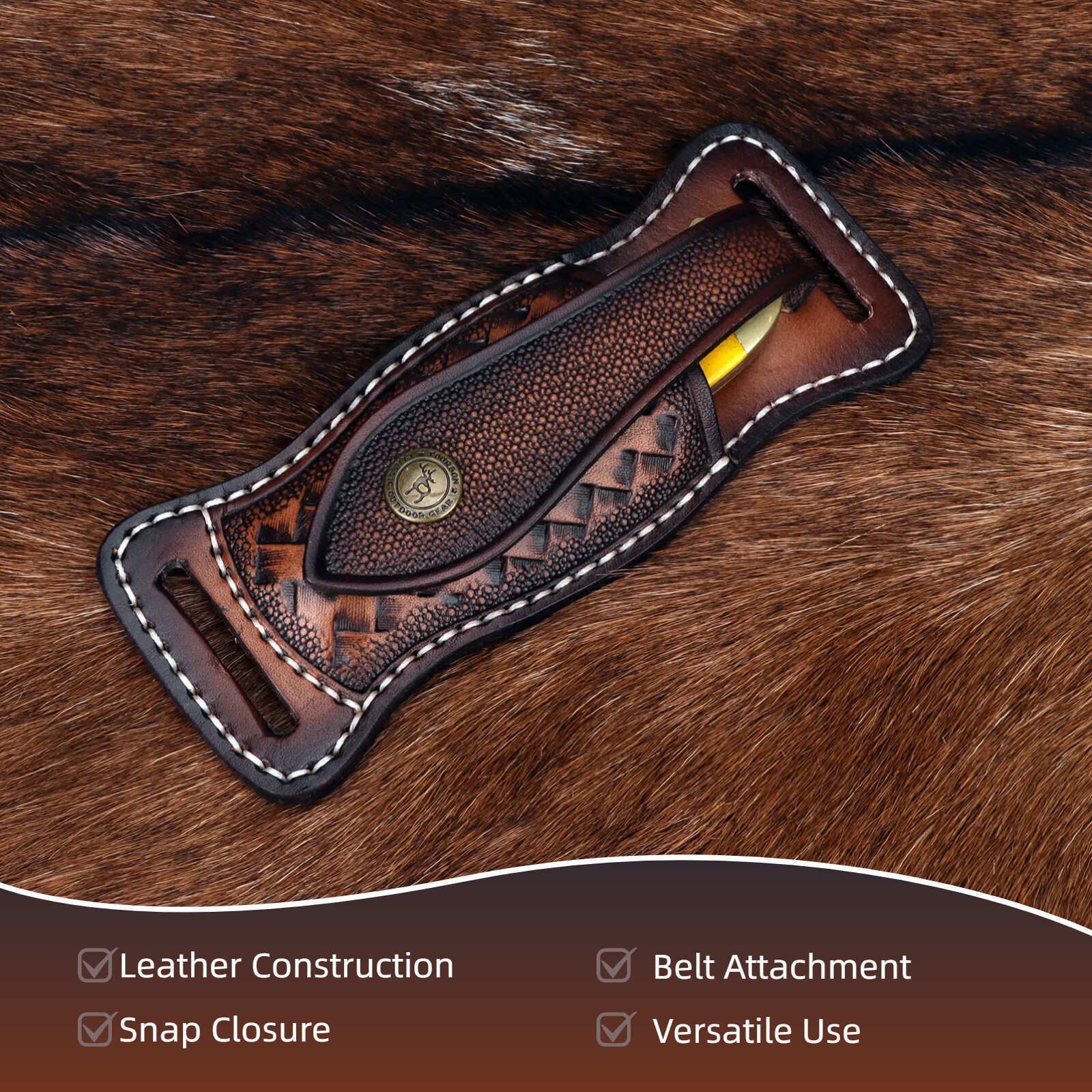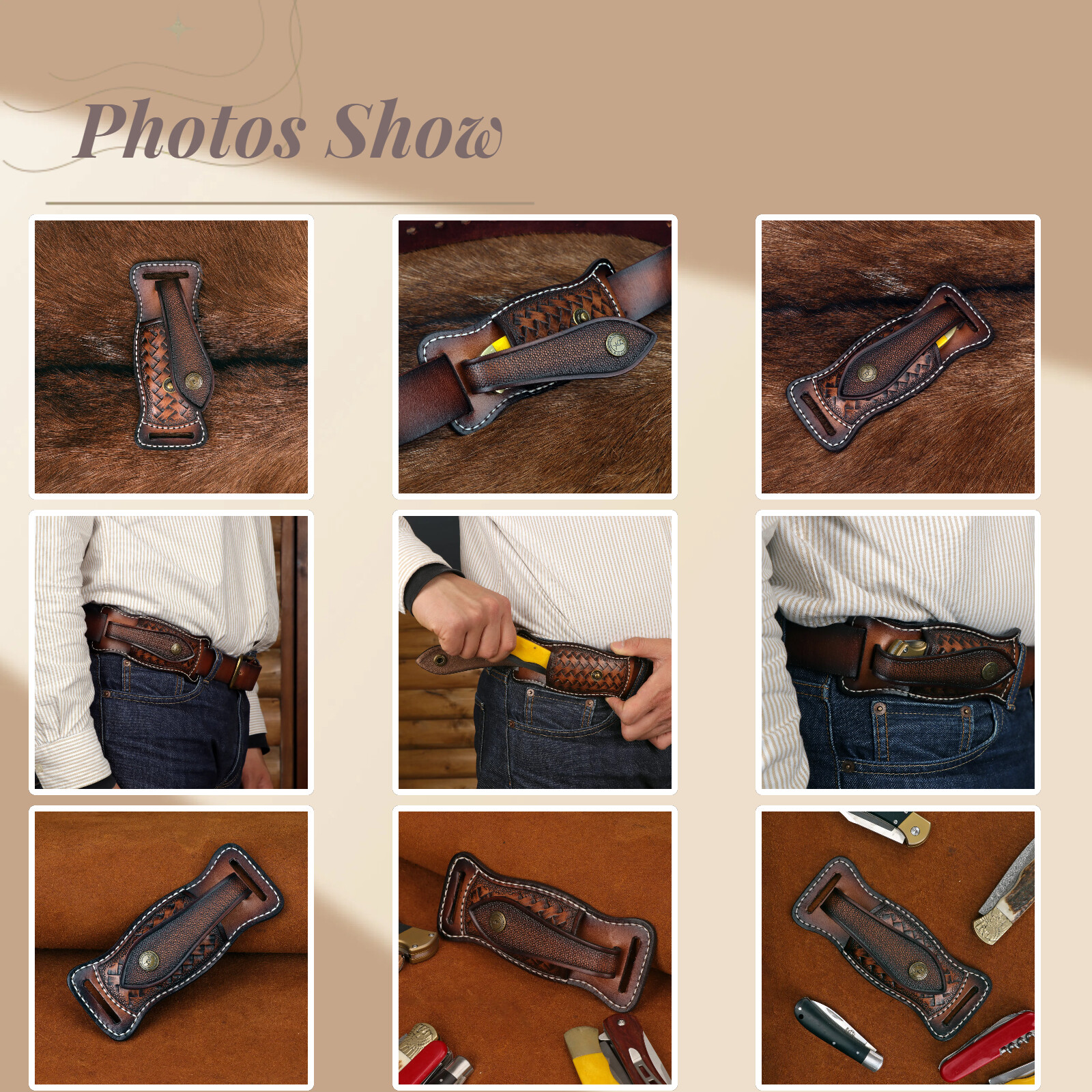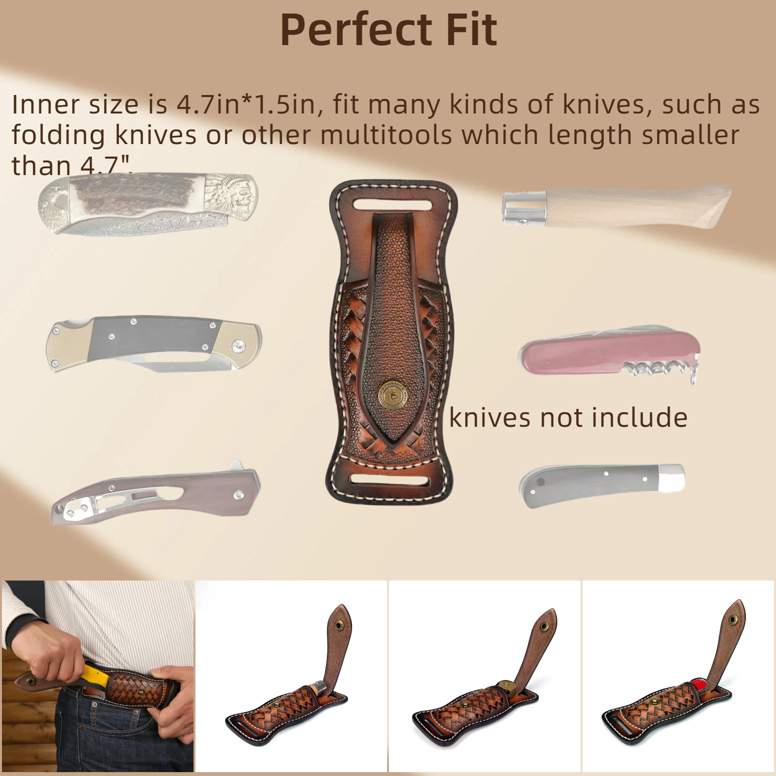 | Package Contents: 1* genuine leather knife carry pouch for belt(knives are not included) |