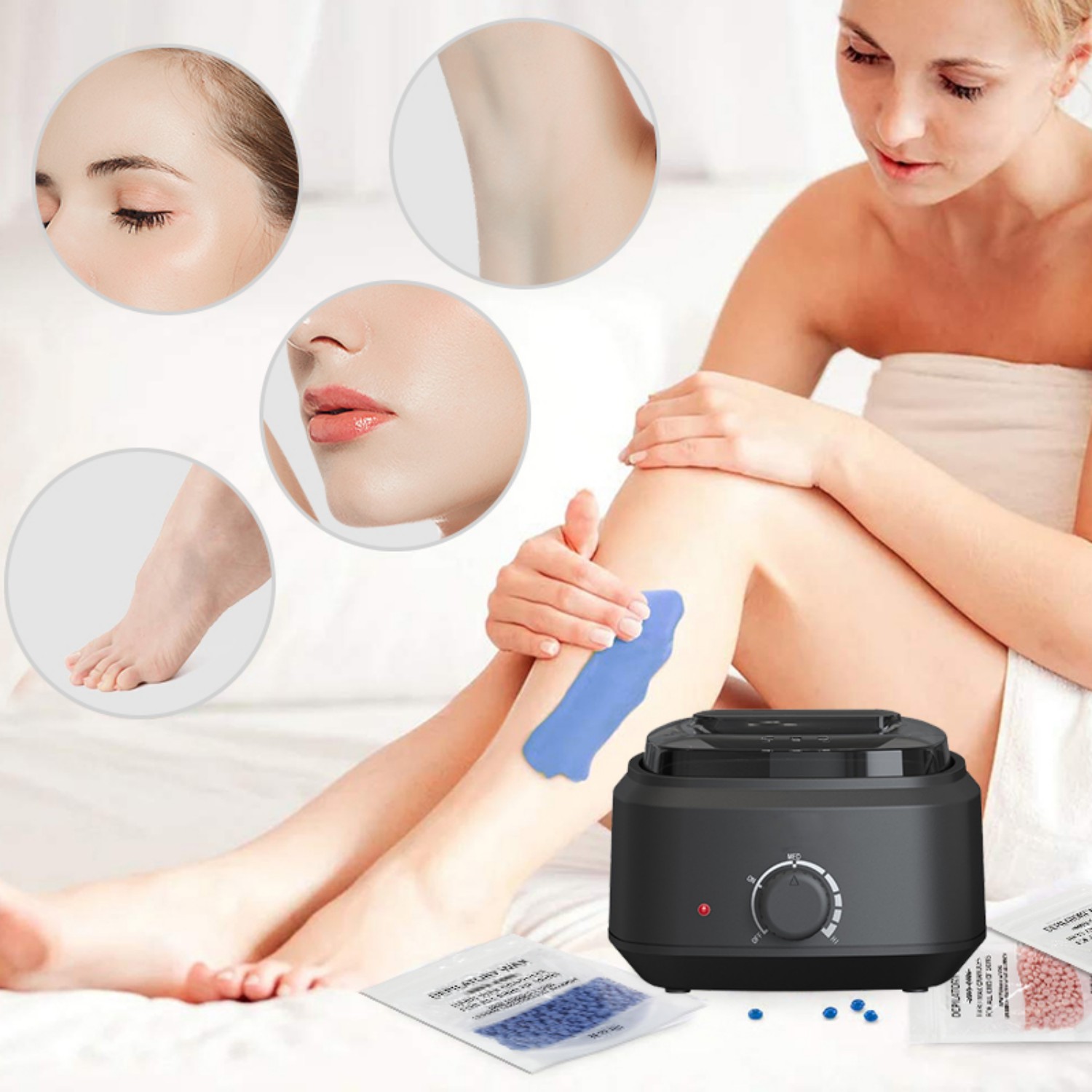 Easily adjust to your ideal temperature using the rotary knob (e.g., 74°C/165°F recommended for leg waxing). A gradual temperature rise during heating is normal; the device will automatically cool and maintain heat once the set temperature is reached.