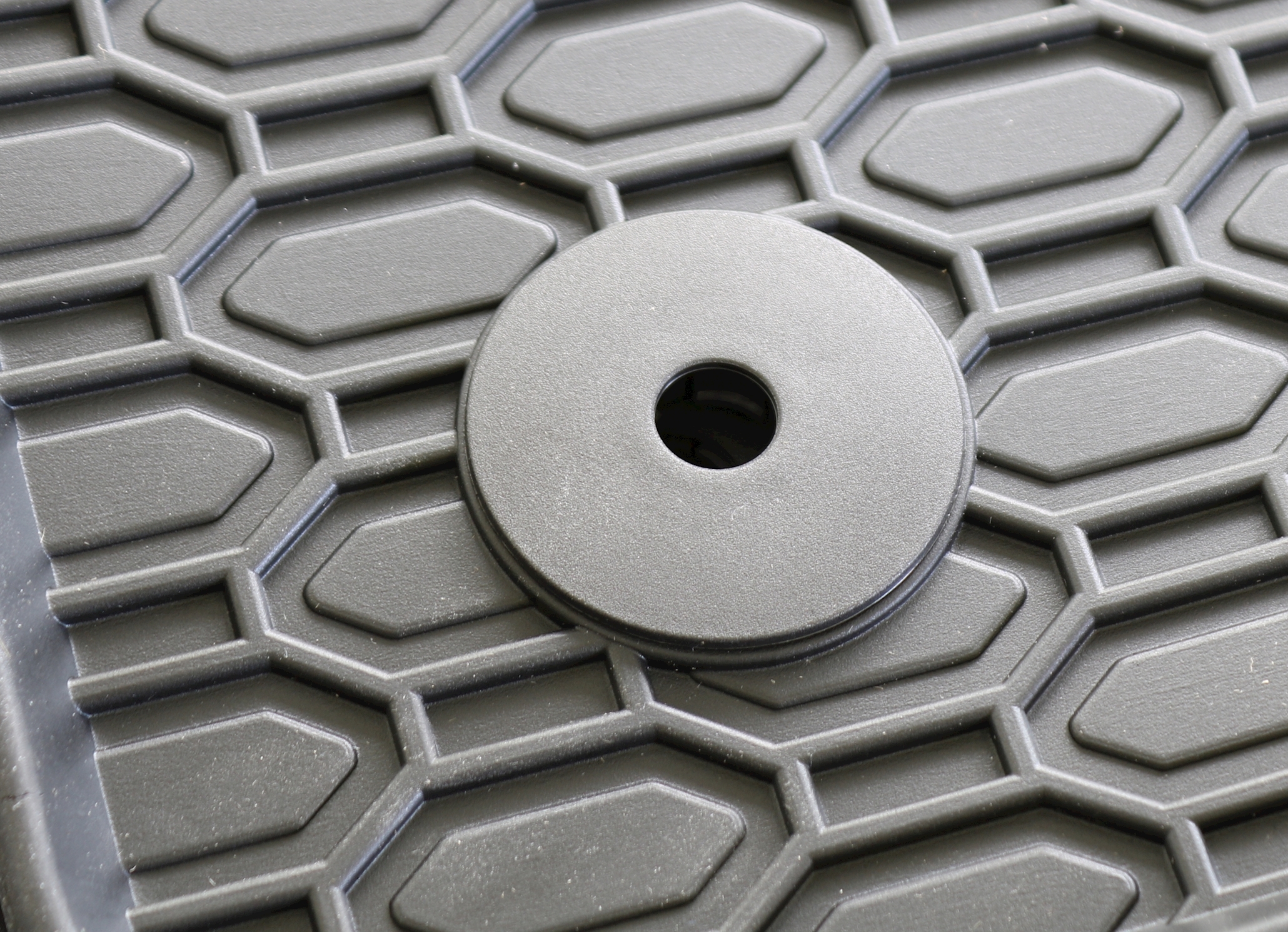 Die von GEYER & HOSAJA hergestellten Gummi-Fußmatten haben eine einzigartige Wabenstruktur. Durch diese Formgebung fließt Wasser und Schmutz nicht von der Fußmatte. Dank des hohen und starken Randes, der sich beim Herausnehmen der Matte aus dem Auto nicht verbiegt, werden Wasser und Schneematsch nicht in das Auto laufen. Der Fersenbereich wurde zusätzlich verstärkt, um einen schnellen Verschleiß des Gummis zu verhindern. Die Automatten sind sehr solide und einfach zu reinigen. Die Gummifußmatten bestehen aus 100% Gummi und sind absolut geruchsneutral.