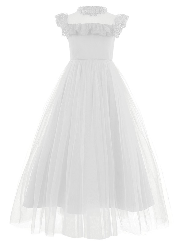 Sleeveless ruffled collar dress with exquisite lace embellished, will not go out of style easily, making it an excellent addition to your princess’s clothes collection.